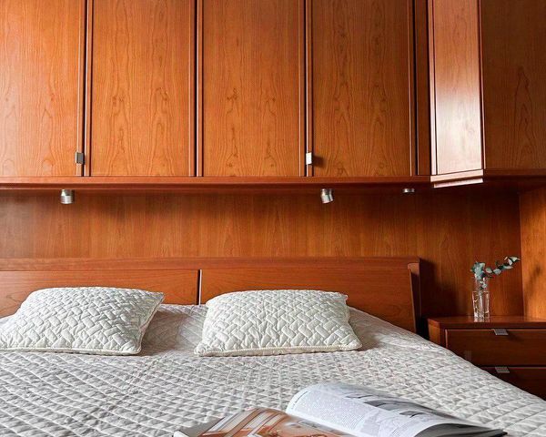 на 2-ом этаже: удобная система хранения шкафов, рассчитанная до сантиметра и большая спальня.
