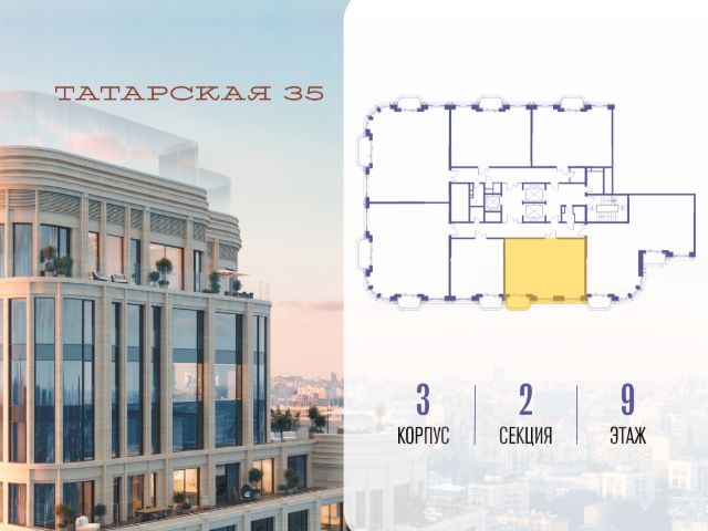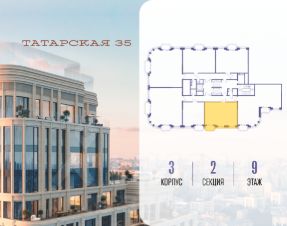 Продается просторная квартира площадью 72.50 м2 в жилом комплексе ТАТАРСКАЯ, 35. Квартира находится в 2 секции корпуса 3. Этаж 9-й из 23. Квартира без чистовой отделки, с просторной кухней 24.70 м2. Жилая площадь 28.40 м2. Высота потолка от 3.50. ТАТАРСКАЯ, 35 - новая архитектурная доминанта Замоскворечья, достопримечательность на фотопанорамах исторического центра Москвы. Элитный дом, созданный для тех, кто умеет смотреть далеко вперед, мыслить масштабно и воплощать собственный сценарий жизни. Вдохновляющие прогулки по променаду набережной, в уютных переулках, в парке "Зарядье", в Михайловском саду и Репинском сквере. Наслаждение высоким искусством в Третьяковской галерее, Доме Музыки, театральном музее им. А.А. Бахрушина, театре на Малой Ордынке. За окнами - Кремль, высотка на Котельнической, панорамы Замоскворечья и острова Балчуг, огни Садового кольца. Собственные спорт-румы, детская, репетиторская, бьюти-пространства, деловое пространство с коворкингом, переговорной и сигарной. Собственный трехуровневый фитнесс-центр с бассейном, тренажерным залом, сауной, хаммамом, массажным кабинетом. Площадь двора - 1,8 га, половина территории покрыта деревьями, кустарниками и лужайками. Дом расположен внутри Садового кольца - отсюда в считанные минуты можно добраться до важнейших мест столицы: достопримечательностей и парков, театров и ресторанов, деловых и административных центров. 7 минут до Кремля на автомобиле, 15 минут до Третьяковской галереи и 8 минут до Садового кольца пешком. Планировочные решения и визуализации предварительны, возможны изменения.