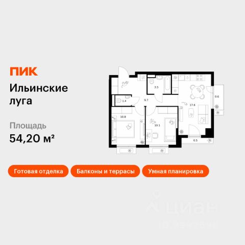 Продаётся 2-комн. квартира площадью 50,8 кв.м на 5 этаже 9 этажного дома (Корпус 4.3, Секция 1) проекта ПИК Ильинские луга. Светлый просторный подъезд на уровне земли, функциональная планировка, большие окна, предчистовая отделка. Жилой район "Ильинские луга" находится в 10 километрах от МКАД по Новорижскому шоссе, в 20 минутах на автомобиле от станций метро "Волоколамская", "Тушинская" и "Строгино". В будущем ближе к проекту, в 9 минутах пути на машине, откроется станция "Ильинская" Рублёво-Архангельской линии, которая будет соединять Арбатско-Покровскую линию и Большую кольцевую линию. Сейчас в квартале начались продажи в корпусах 3.2, 3.3, 3.4, 3.5 и 3.6. "Ильинские луга" — масштабный проект, в который входит девять детских садов, четыре школы и поликлиника. Он строится в престижном и экологичном районе среди лесов и памятников природы. За 5 минут от жилого квартала можно доехать до Рублёво-Успенского шоссе, а за 30 минут — до центра Москвы. До крупного торгового центра "РИГАМОЛЛ" всего 5 минут на автомобиле, а до ТЦ "Твой дом" и гипермаркета "Глобус" — 10 минут. В "Ильинских лугах" строятся только девятиэтажные дома — такая архитектура соответствует спокойной жизни за городом. В каждом дворе-парке есть места для отдыха, детские и спортивные площадки. А ещё, здесь уже открыт большой PlayHub "Гравити" — современное игровое пространство с космической тематикой, холмами, зонами для игр и отдыха жителей любого возраста. На первых этажах уже работают магазины, кафе и пекарни. Места для отдыха от "Ильинских лугов" тоже недалеко: 10 минут на машине — и вы в музее-усадьбе "Архангельское". Также рядом находится Лохин остров — памятник природы, где водятся речные черепахи, есть места для кемпинга и возможность сплавиться по реке. Артикул 1011794 (Застройщик ООО "СЗ "ГРАДОЛИМП")