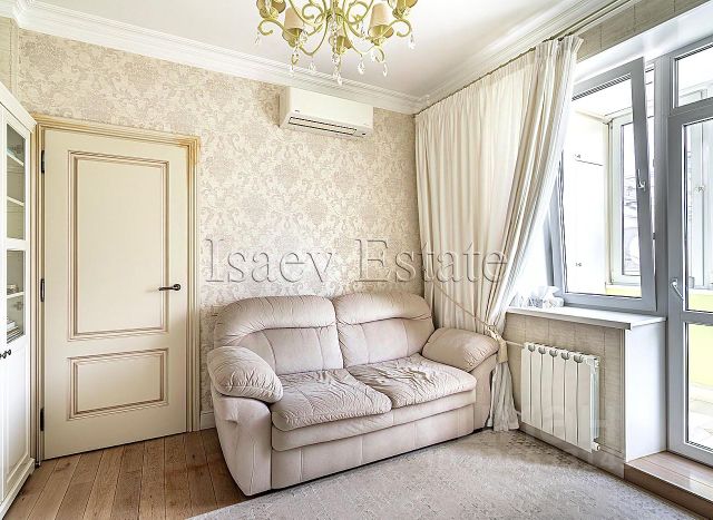 Квартира с 2 спальнями и премиальной финишной отделкой находится на 3 этаже Клубного дома TURGENEV. Квартира меблирована дизайнерской мебелью итальянского производителя LEMA, которую может заказать каждый покупатель резиденции в TURGENEV (дополнительная опция). Моллированное (радиусное) окно в зоне кухни-столовой-гостиной (46,34 м2) добавляет интерьеру оригинальность и привлекательность, а также увеличивает количество естественного освещения. Панорамные окна выходят на две стороны: западную и северную, из которых видны зеленые насаждения и тихий Селиверстов переулок. Окна двух спален (14,39 м2 и 16,39 м2) выходят на восточную сторону во внутренний двор-сад с фонтаном. Помимо просторной ванной комнаты (8,64 м2), в квартире есть санузел с душем, гостевой санузел, гардеробная и постирочная с сушильной и стиральной машинами от немецкого производителя Kuppersbusch в комплекте. Дом сдан. Клубный дом TURGENEV (Тургенев) расположен в ЦАО Москвы в районе Чистых прудов, в тихом месте на Костянском переулке между Садовым и Бульварным кольцом, в 3 км от Красной площади Кремля. Рядом большое количество достопримечательностей, музеев, театров, ресторанов, баров, торговых центров. Архитектурный проект дома разработан при участии международной команды архитекторов: Squire&Partners из Британии и Building Design Architectuur из Нидерландов. Фасад - натуральный камень: первые 6 этажей - португальский известняк, 7 и 8 этажи - гранит Dark Brown. Клубный дом TURGENEV имеет П-образную форму и состоит из 8 этажей, 5 секций и 118 квартир, включая двухуровневые пентхаусы с террасами и каминами. Все квартиры в Клубном доме TURGENEV реализуются с чистовой премиальной дизайнерской отделкой в современном стиле контемпорари от нидерландского бюро Wolterinck. В отделке квартир в TURGENEV используются экологичные, природные материалы премиального качества: пол из натуральной австрийской паркетной доски Austriawood, стены - итальянская краска PRATTA Exclusive, в санузлах - английская штукатурка Tadelakt и натуральный мрамор: итальянский Wooden White и греческий Pirgon. В каждой квартире установлены кухни от итальянского бренда Cesar со встроенной бытовой техникой премиальной линейки Smeg. Кухонный остров, столешница и фартук кухни выполнены из эксклюзивного итальянского мрамора Arabescato Grigio Orobico, одним из лучших видов мрамора на итальянском рынке натуральных отделочных камней. Внутренний двор с садом Клубного дома TURGENEV - оазис с зелеными газонами, мощеными тропинками, фонтанами, водными каналами и зонами для отдыха. Сад идеально вписан в пространство внутреннего двора. В доме предусмотрен инфраструктурный этаж, на котором расположены бассейн, фитнес-зона, зал для йоги, сауна, хаммам, дорожка Кнейпа, массажные кабинеты, кинотеатр, ресторан, винная, сигарная и переговорная комнаты. Вся инфраструктура Клубного дома TURGENEV также выдержана в едином стиле проекта. Каждый покупатель квартиры в Клубном доме TURGENEV может заказать дополнительную опцию - меблировка "п