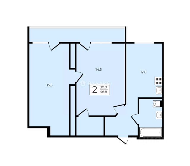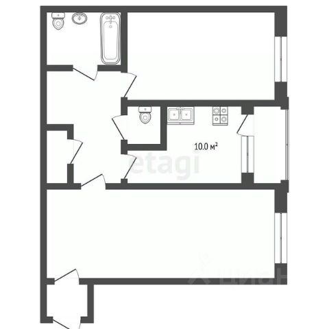 квартира на 17-м этаже, общая площадь 45,8 м², из них две изолированные комнаты площадью 9,9 кв. м и 9,7 кв. м, а также большая кухню в 19 кв. м, где будет удобно собираться с семьей или принимать гостей.