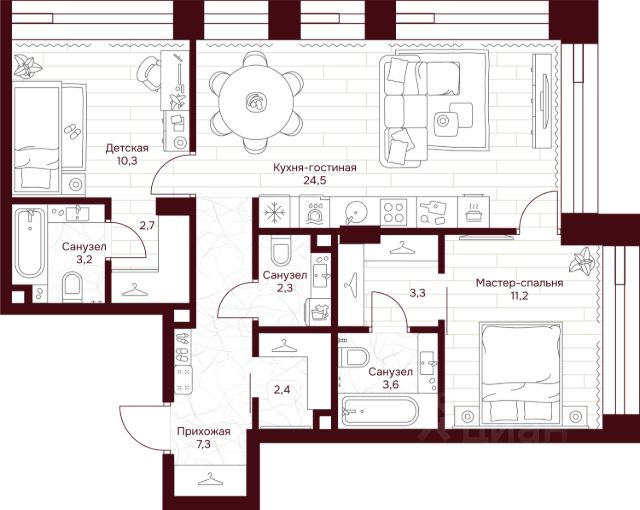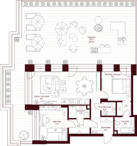 Планировка с подробным описанием зон: