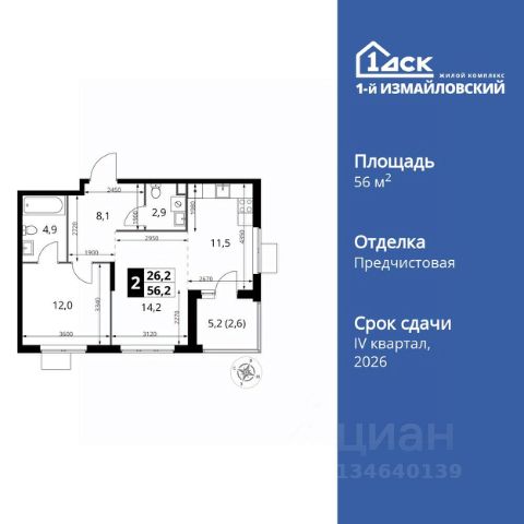Прямая продажа от застройщика! Жилой Комплекс Комфорт класса. Продаётся 2-к квартира номер 63 общей площадью 46.9 кв.м. на 10-м этаже 24 этажного дома. Отделка Whitebox. Цена с учётом скидки! Особенности квартиры: - Угловая планировка - больше пространства для ваших идей. - Увеличенное количество окон - дополнительное освещение и свежий воздух. - Ниша под стиральную машину - удобство и экономия пространства. - Раздельный санузел - больше удобства для всех членов семьи. - Евроформат - просторное и удобное жилье с отличной планировкой. - Гибкая планировка - создайте пространство по своему вкусу. - Возможность добавить спальное место - дополнительный комфорт для гостей. - Ниша под шкаф - компактное и удобное место для вещей. - Просторная лоджия - идеальное место для уютных вечеров. - Панорамное остекление лоджии - открывает вид на окружающий мир. Квартира с предчистовой отделкой (White box). Вам не придется заниматься черновыми и трудоёмкими работы, а чистовую отделку и дизайн - сделайте на свой вкус. Информация о комплексе: Современный архитектурный проект "1-й Измайловский" - идеальное место для проживания, расположенное в восточной части Москвы в окружении 14 000 гектаров леса. Комплекс пронизан атмосферой здорового образа жизни и благополучия. Сиреневый сад и близлежащие лесопарки - это места, где можно насладиться лыжными прогулками зимой и тонизирующими пробежками летом. Расположенный между Щелковским шоссе и Амурской улицей, "1-й Измайловский" осмысляет себя не столько через близость к городским точкам притяжения, сколько через соседство с зелеными пространствами и спортивными объектами. Он отгорожен от шоссе застройкой первой линии и собственными садами здоровья. В его окнах - изумрудное море парка "Лосиный остров" и густые кроны окрестных дворов. В его графике - занятия спортом и прогулки в Измайлове. Транспортная доступность: Не более 2,5 км до станций метро "Щёлковская" и "Черкизовская" и МЦК "Локомотив". Щёлковское шоссе соединяет квартал с Северо-восточной хордой и МКАД, Центральным автовокзалом и Восточным железнодорожным вокзалом. Две автобусные остановки в паре минут ходьбы и 11 маршрутов общественного транспорта. На автомобиле 3 минуты до СВХ 12 минут до ТТК 15 минут до Садового кольца Внутренняя инфраструктура: Комплекс находится в исторически сложившемся районе Москвы с хорошим качеством и плотностью инфраструктуры. Торговые центры и сетевые магазины -6 детских садов, включая собственный детский сад на 125 мест -3 школы, включая собственную школу -Поликлиники и медицинские центры -Парки и зоны отдыха Расположение архитектурного проекта создает все условия для тех, кто стремится к здоровому образу жизни и для тех, кто уже сделал выбор в его пользу. В ближайшем окружении расположены несколько стадионов и множество спортивных объектов для занятий спортом на любой вкус: от всеми любимого футбола, баскетбола и до конного спорта. В окружении проекта более 30 километров организованных бег