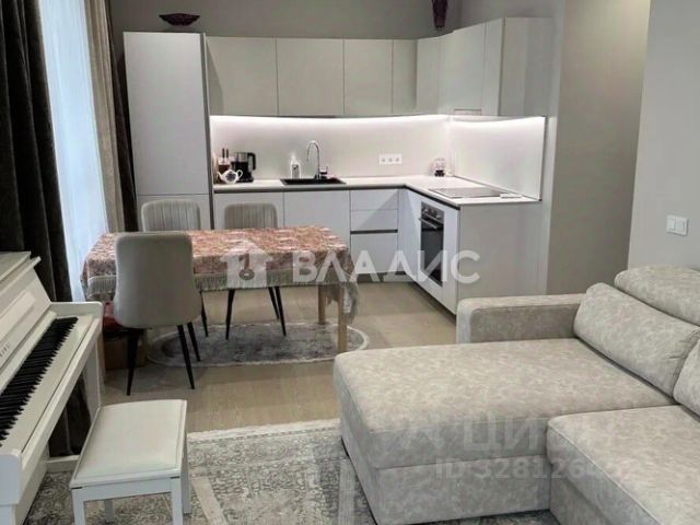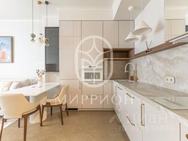 В отделке использованы высококачественные натуральные материалы, ремонт по авторскому дизайн-проекту. Кухонная зона, санузел и прихожая отделаны крупноформатным керамогранитом, тёплые полы в прихожей и санузле. В гостиной и спальне качественная инженерная доска, декоративные панели EGGER. Скрытые двери 2.4 с дополнительной шумоизоляцией.