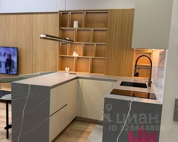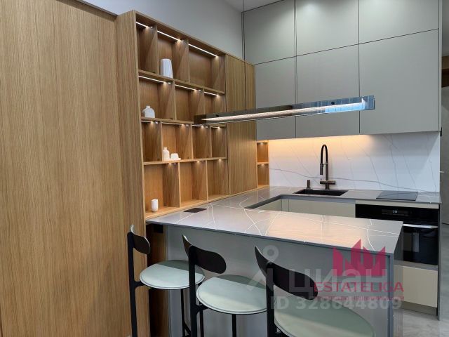 Описание квартиры: Квартира находится в малоэтажной секции. Всего 12 квартир в подъезде, что создает камерную обстановку, бережно относится к Вашему личному пространству. Панорамные окна квартиры выходят в зеленый живописный двор. Планировка включает в себя: большую кухню-гостиную со встроенной мебелью и бытовой техникой, две изолированные спальни, одна из которых с лоджией-кабинетом, два санузла, широкий коридор со встроенными шкафами. Выполнен дизайнерский ремонт с использованием высококачественных и премиальных материалов. Интерьеры укомплектованы дорогостоящей мебелью на заказ, кухня выполнена из массива дуба, кровати с подъемными механизмами, ванна из литиевого мрамора.