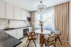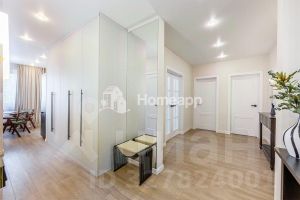 В квартире сделан качественный дизайнерский ремонт, планировка продумана до мелочей, никто после ремонта не жил. Заменены стояки холодного и горячего водоснабжения, радиаторы отопления, стеклопакеты. Всё абсолютно новое: сантехника (трубы REHAU), канализация, электрическая проводка (автоматы АВВ), установлены кондиционеры. На полу залита новая стяжка, уложен ламинат (33 класс), стены окрашены практичной моющейся краской. В квартире есть всё необходимое для комфортной жизни — уютная кухня с встроенным холодильником, посудомойкой, духовкой, вытяжкой; вместительная гостиная с обеденной зонной и зоной для отдыха с шикарным раскладным диваном; уютная спальня с собственной гардеробной; в прихожей большое зеркало и отдельная гардеробная для верхней одежды. Просторная ванная комната оборудована тёплым полом, большой ванной, душевой системой с тропическим душем, гигиеническим душем, стиральной машиной, установлены датчики протечки Neptun.