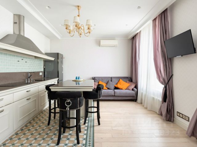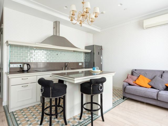 Итальянский кухонный гарнитур, столешница и подоконники из натурального камня, вся техника Miele, на полу паркетная доска, мебель сделана на заказ. Все для комфортного проживания: кондиционер, теплый пол. Из окон открывается прекрасный панорамный вид на Москву.