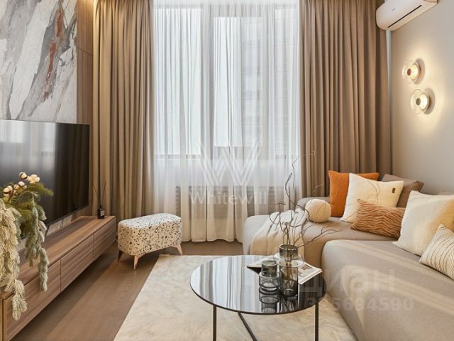Квартира состоит из - уютная изолированная спальня, с большим высоким гардеробом, разными видами освещения; светлый зал/студио с полноценным раскладывающимся диваном, с отдельностоящей обеденной зоной; зона кухни с мебельным гарнитуром класса люкс, выполнена из натурального шпона, включая фурнитуру Blum, со встроенной качественной техникой известных брендов - встроенный холодильник, варочная панель, дизайнерская вытяжка подключенная напрямую в вытяжную вентиляцию, встроенная стиральная машина, столешница выполнена на заказ из натурального мрамора Imperador Gold, стеновая панель из штучной итальянской плитки; ванная комната выполнена с использованием итальянской эксклюзивной штучной плитки, установлен тропический душ, встроенная сантехника, есть душ биде. Телевизор Philips со Смарт-ТВ высокого разрешения 4К, и умной подсветкой Ambilight, установлен высокоскоростной интернет, умное освещение, система кондиционирования Electrolux. Дорогостоящая мебель, предметы интерьера и дизайна, гипсовая лепнина, итальянские светильники. Для хранения вещей предусмотрены - гардеробная, полноценный шкаф при входе, также большой шкаф в спальне, шкаф в санузле, кровать с подъемным механизмом. В ЖК есть двухуровневая парковка, и вся необходимая инфраструктура (магазины, супермаркеты, открывается фитнес-клуб, кафе, рестораны, и многое другое)