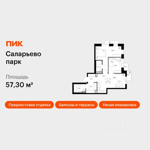 Продаётся 2-комн. квартира площадью 46,1 кв.м на 2 этаже 16 этажного дома (Корпус 57.4, Секция 4) проекта ПИК Саларьево парк. Светлый просторный подъезд на уровне земли, функциональная планировка, большие окна, предчистовая отделка. Жилой район "Саларьево парк" расположен в Новой Москве, в четырёх километрах от МКАД по Киевскому шоссе. Две станции метро: "Саларьево" и "Филатов луг", — находятся в пешей доступности от проекта. Дойти до них можно за 510 минут. В квартале уже создана качественная среда, где есть абсолютно всё для полноценной жизни, работы и отдыха. Благодаря удобному расположению проекта всё важное будет рядом: детские сады, школы, кафе и рестораны, шопинг в торговых центрах, фитнес и даже аэропорт. Все корпуса в квартале гармонично сочетаются, образуя единую городскую среду. Между собой их объединяет невысокая этажность и натуральная цветовая гамма. Здесь приятно гулять и проводить время на улице всей семьёй. В "Саларьево парке" создана уникальная образовательная среда, включающая в себя шесть школ, рассчитанных на 6 250 учеников. Две из них уже открыты, их посещает 2 300 детей. Также на территории "Саларьево парка" находится 12 детских садов, один из которых с бассейном. Сейчас уже открыты 7 садов. В "Саларьево парке" открыта уникальная игровая площадка — PlayHub "Оригами". Здесь есть ручей, горка-труба и рельефные холмы. Взрослые смогут отдохнуть в уютном кафе, пока дети играют. Также на территории проекта есть SportHub — большая спортивная зона, разделённая по интересам и возрастам. Здесь можно заниматься разными видами спорта: футболом, баскетболом, волейболом и стритболом. Зимой центральную часть площадки превращают в каток. Во дворах-парках жилого квартала есть места для отдыха, детские и спортивные площадки. На первых этажах домов расположены магазины, кафе и полезные сервисы. Также вблизи проекта есть несколько масштабных торговых центров. До ТЦ "Саларис" пять минут пешком, до "Рио", Metro Cash & Carry и "Леруа Мерлен" — пять минут на автомобиле. Артикул 1018535 (Застройщик ООО "Специализированный Застройщик "Тирон")