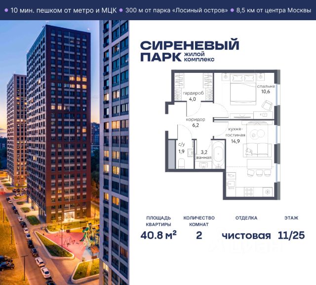 Продаётся просторная 2-комнатная квартира общей площадью 51.8 м² на 6 этаже в новом жилом комплексе "Сиреневый парк", расположенном в Восточном административном округе Москвы на улице Тагильская. Всего 10 минут ходьбы от станции метро "Бульвар Рокоссовского" и одноимённой платформы МЦК. Высококачественное монолитное строительство гарантирует сохранение тепла в доме, а наличие квартир с предчистовой и чистовой отделкой позволяет вам сэкономить время и сразу же переехать в свое жилье после покупки. Благодаря разнообразию планировок вы сможете выбрать идеальный вариант, соответствующий вашим предпочтениям и образу жизни. Предлагаются квартиры: - с просторными кухнями-гостиными, - с нишами для хранения вещей и отдельными гардеробными, - мастер-спальни с собственными санузлами, - большие комнаты с высокими потолками (2,9 м) и с увеличенными безопасными окнами (1,95 м) , которые наполнят ваш дом естественным светом; - с чистовой отделкой по двум дизайн-проектам на выбор; - с остекленными лоджиями и панорамными видами на лес. Каждая деталь в этом доме создана для вашего комфорта: - безбарьерная среда, - бесшумные скоростные лифты, - машиноместа в отапливаемом подземном паркинге и кладовые на -1 этаже с доступом из лифта, - развитая инфраструктура с супермаркетами, кафе, фитнес-клубами, салонами красоты и частным детским садом обеспечивает максимальное удобство жителям. В 300 метрах от ЖК расположен Национальный парк "Лосиный остров". Способы покупки: 100%, Trade-in, Семейная ипотека без наценки, стандартная ипотека. Запишитесь на просмотр в офис продаж и получите свою персональную скидку по акции Назови свою скидку. ЖК "Сиреневый парк" — гармония в деталях, совершенство в каждом моменте. Застройщик проекта - AFI Development.
