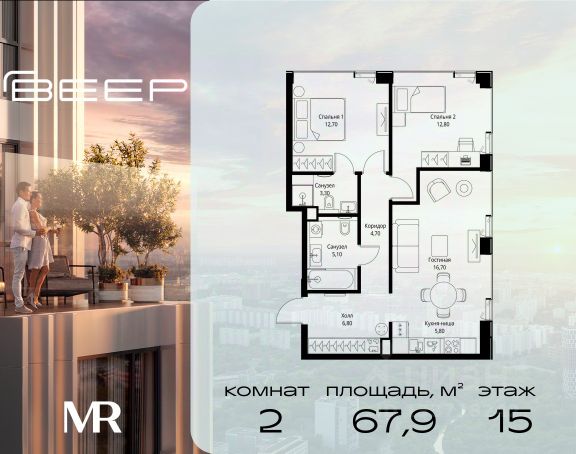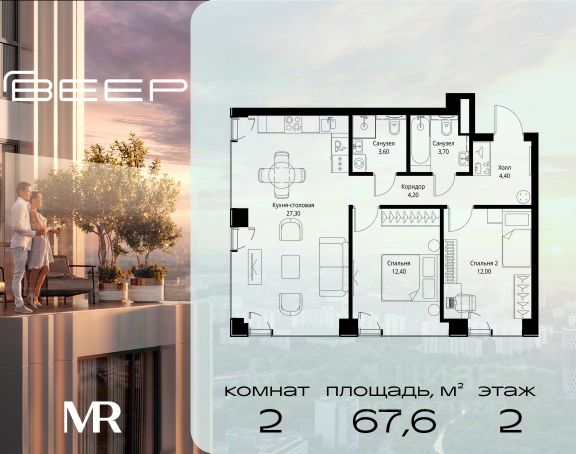 Прямая продажа от застройщика. Продаётся 2-комнатная квартира общей площадью 115.60 м² с предчистовой отделкой в ЖК Веер на 2-м этаже 22 этажного дома. Жилой комплекс бизнес-класса Веер от компании MR — это футуристичный мультиквартал, расположенный в престижной локации на западе Москвы. Благодаря переменной высоте башен — двух 22-этажных, 46-этажной и двух 59-этажных — возникает динамичность в силуэте комплекса, а его яркий образ вносит разноплановость в архитектурный пейзаж района. Расположение и транспортная доступность: • Веер удобно расположен в непосредственной близости от Кутузовского проспекта, обеспечивая быстрый доступ к центральным районам Москвы • Комплекс находится непосредственно напротив самого большого природного заказника в Москве - парка "Долина реки Сетунь", а за семь минут можно доехать до памятника садово-паркового искусства, Троекуровского леса. • Всего в 15 минутах - центр города, самая престижная бизнес-школа управления России "Сколково", дом творчества "Переделкино". Инфраструктура: Разнообразить свой день резиденты Веер смогут также проводя больше времени на свежем воздухе. Двор разделен на 4 зоны разных эмоций и действий, которые пересечены и соединены веерными прогулочными маршрутами: • Спортивная площадка устроена в глубине "Кленовой рощи" • В "Чайном домике" будет создан навес с утеплением для отдыха в любую погоду • Площадки для детей воплотятся в "Волшебный лес" с цветами, зеркалами и световым дизайном • "Центральная площадь" устроена у водного оазиса живописного пруда. Компания MR предлагает своим клиентам специальные условия приобретения квартир в рамках программ ипотечного кредитования от банков-партнеров.