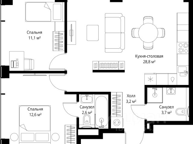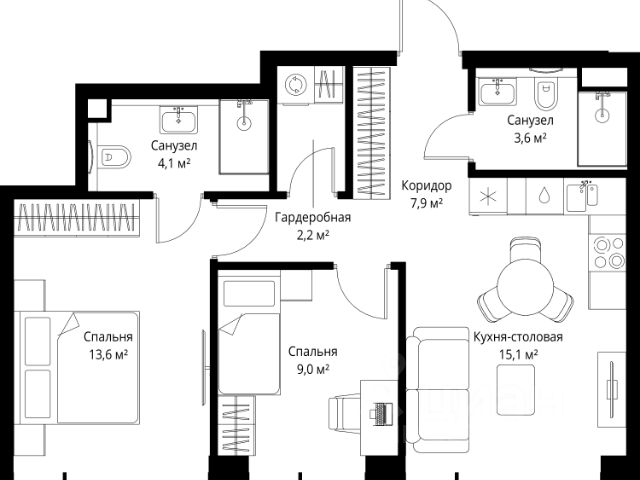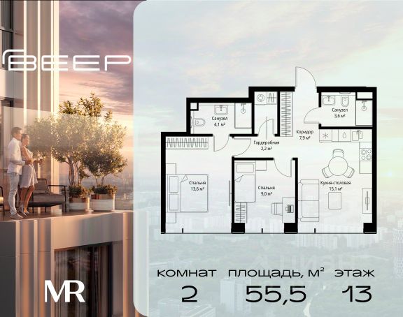 Прямая продажа от застройщика. Продаётся 2-комнатная квартира общей площадью 52 м² с предчистовой отделкой в ЖК Веер на 22-м этаже 22 этажного дома. Жилой комплекс бизнес-класса Веер от компании MR — это футуристичный мультиквартал, расположенный в престижной локации на западе Москвы. Благодаря переменной высоте башен — двух 22-этажных, 46-этажной и двух 59-этажных — возникает динамичность в силуэте комплекса, а его яркий образ вносит разноплановость в архитектурный пейзаж района. Расположение и транспортная доступность: • Веер удобно расположен в непосредственной близости от Кутузовского проспекта, обеспечивая быстрый доступ к центральным районам Москвы • Комплекс находится непосредственно напротив самого большого природного заказника в Москве - парка "Долина реки Сетунь", а за семь минут можно доехать до памятника садово-паркового искусства, Троекуровского леса. • Всего в 15 минутах - центр города, самая престижная бизнес-школа управления России "Сколково", дом творчества "Переделкино". Инфраструктура: Разнообразить свой день резиденты Веер смогут также проводя больше времени на свежем воздухе. Двор разделен на 4 зоны разных эмоций и действий, которые пересечены и соединены веерными прогулочными маршрутами: • Спортивная площадка устроена в глубине "Кленовой рощи" • В "Чайном домике" будет создан навес с утеплением для отдыха в любую погоду • Площадки для детей воплотятся в "Волшебный лес" с цветами, зеркалами и световым дизайном • "Центральная площадь" устроена у водного оазиса живописного пруда. Компания MR предлагает своим клиентам специальные условия приобретения квартир в рамках программ ипотечного кредитования от банков-партнеров.