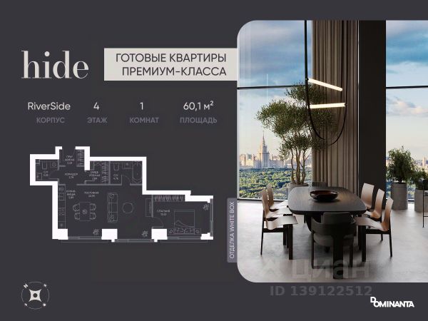 ОТ СОБСТВЕННИКА! Видовая квартира, НЕ апартаменты, с видом на Московский университет и Хамовники с собственной территорией в ЖК Hide премиального класса. Башня West Dale.