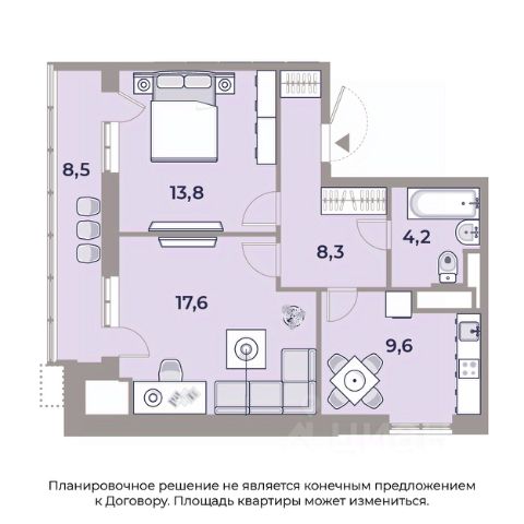 Арт. 116643151 Продается шикарная евродвушка 41 кв.м. в полностью зaсeлeннoм ЖK бизнес-класса