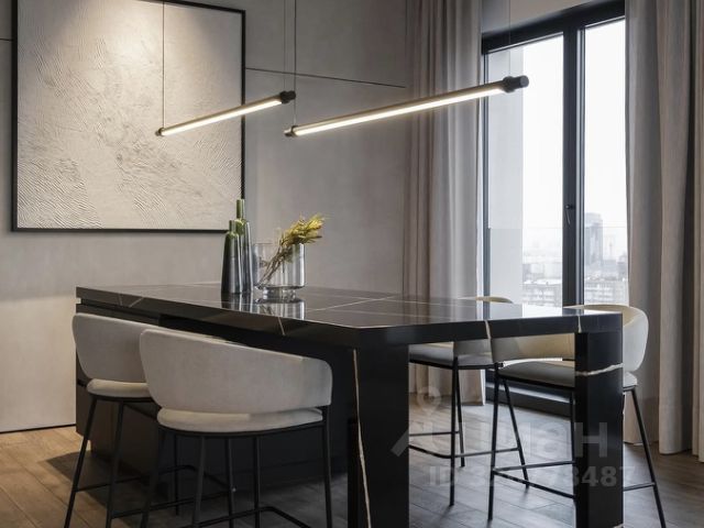Квартира укомплектована мебелью и бытовой техникой премиальной линейки Siemens, установлены итальянский кухонный гарнитур и немецкая сантехника. Пространство функционально и готово к проживанию.