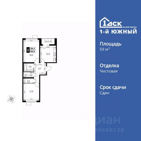 Прямая продажа от застройщика! Жилой Комплекс класса Комфорт Плюс. Продаётся 2-к квартира номер 294 общей площадью 59.5 кв.м. на 17-м этаже 25 этажного здания. Чистовая отделка. Цена с учётом скидки. Особенности квартиры: - МЦД-5 в пешей доступности - Квартал с южным садом - Свои 3 детских сада и 2 большие школы - Просторная спальня, в которой можно разместить большую кровать. - Линейная планировка - максимальная функциональность и удобство. - Гостевой санузел - комфорт и удобство для ваших гостей. - Раздельный санузел - больше удобства для всех членов семьи. - Просторная кухня - место для семейных ужинов и кулинарных экспериментов. - Просторная мягкая зона - комфорт и уют для отдыха всей семьи. - Возможность добавить спальное место - дополнительный комфорт для гостей. - Гардеробная - удобство для хранения и организации вещей. - Ниша под шкаф - компактное и удобное место для вещей. - Лоджия - уютное место для отдыха и тишины. Информация о комплексе: Одно из преимуществ проектов 1- ДСК большие застекленные лоджии. Другое преимущество честный евро-формат. Во всем проекте предусмотрена система Умный дом. В состав устанавливаемого пакета устройств входит: WiFi реле для управления группами потребителей, беспроводной кран перекрытия с эл. приводом, беспроводной сенсор протечки, Яндекс Станция Мини. Его расположение можно назвать удачным за счет транспортной доступности и близости к природным объектам. По соседству лес, а в каждом дворе плодовые деревья. Весной квартал окутывает бело-розовое облако: это цветут яблони, груши, сливы. К августу в воздух наполняется ароматом созревших плодов. Зимой среди покрытых инеем деревьев протянулась лыжня. Транспортная доступность: - Общественный транспорт: Действующая ж/д станция Булатниково (в перспективе будущая МДЦ D5) в пешей доступности, всего 10-12 минут. - Личный автотранспорт: Удобный выезд на трассу М4-Дон в сторону Москвы и области 850 м, до МКАД - 1 км Внутренняя инфраструктура: Красивые продуманные подъезды - еще одно преимущество проекта 1-й Южный. Вход в сквозные подъезды есть и с улицы, и со двора. Благодаря сплошному остеклению в них всегда светло и уютно. Подъезды расположены на уровне земли, поэтому и молодым родителям с коляской, и жильцам с ограниченными возможностями вход и выход неудобств не доставят. В помещении предусмотрено место под стойку ресепшен с выводом инженерных сетей. Если жильцы решат на общем собрании, что необходим охранник или консьерж, организовать для них рабочее место можно быстро и с минимальными затратами. В подъездах предусмотрены уборные для детей и взрослых. Колясочные в каждом подъезде позволяют поддерживать порядок и чистоту на этажах. На случай прогулки с четвероногим питомцем в непогоду в подъездах устроены лапомойки. Во дворах и на общественных территориях 1-ого Южного столько всего интересного для юных обитателей. Собственные 3 детских сада и 2 больших школы буквально под окнами Изюминка проекта - пешеходный бульвар-денд