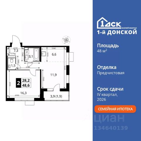 Прямая продажа от застройщика! Жилой Комплекс класса Комфорт Плюс. Продаётся 2-к квартира номер 607 общей площадью 48.6 кв.м. на 13-м этаже 24 этажного здания. Отделка Whitebox. Особенности квартиры: - МЦД-5 в пешей доступности - Квартал с собственной набережной - Свои 2 детских сада и школа - Угловая планировка - больше пространства для ваших идей. - Увеличенное количество окон - дополнительное освещение и свежий воздух. - Евроформат - просторное и удобное жилье с отличной планировкой. - Возможность добавить спальное место - дополнительный комфорт для гостей. - Ниша под шкаф - компактное и удобное место для вещей. - Лоджия - уютное место для отдыха и тишины. Квартира с предчистовой отделкой (White box). Вам не придется заниматься черновыми и трудоёмкими работы, а чистовую отделку и дизайн - сделайте на свой вкус. Информация о комплексе: Комплекс 1-й Донской расположен в 7 км от МКАД по трассе М-4 Дон. В нем сочетаются все плюсы комфортной городской среды и природного окружения. В проекте достаточно большой процент квартир, выходящих на 2-3 стороны света. Секции-маяки формируют у зданий визуальную L-форму, что придает застройке структуру и ритмику объемов. На ощущение динамики работает и разная этажность зданий. Теплая цветовая палитра фасадов отражает природу Дона. Вечерами дома преображаются благодаря архитектурной подсветке, выгодно выделяясь на городском фоне. Природа оказывает положительное влияние на человека на всех уровнях восприятия: через зрение, запахи, звуки, тактильные ощущения. Неподалеку от ЖК Первый Донской: Ермолинский парк, Видновский лесопарк, Жуковский парк Транспортная доступность: Комплекс удобно расположен в 7 км от МКАД по трассе М-4 Дон (через Видное). Расстояние до Каширского шоссе составляет 12 км. Добраться до метро и центра Москвы позволяет развитая сеть маршрутов общественного наземного транспорта. Действующая ж/д станция Калинина Павелецкого направления в 15-17 минутах ходьбы (МЦД-5 в 2025-2026 гг). Внутренняя инфраструктура: Проект 1-й Донской соседствует с бурно развивающимся районом, основная инфраструктура которого уже сложилась. В строительстве современных жилых комплексов в округе есть свои плюсы: здесь формируется продуманная и комфортная городская среда. Что касается внутренней инфраструктуры, на территории квартала будут расположены собственные муниципальные 2 детских садика и школа, которые помогут совместить приятное с полезным. Территория комплекса пронизана целой сетью живописных пешеходных маршрутов, позволяющих попасть в любой уголок района. Основные пути, как водится, "торговые". Они проходят вдоль магазинов, кафе и других представителей коммерции и отделяются от проезжей части зеленой "фито" - стеной. Среди крупных социальных объектов предусмотрены своя поликлиника и торговый центр с примыкающей площадью для общественных мероприятий. Уют начинается с продуманного подъезда. Сквозные подъезды наполнены светом благодаря сплошному остеклению. Вход в них есть и