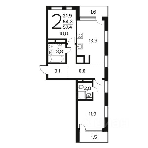 В квартире максимально продумана планировка, позволяющая использовать пространство выгодно и удобно. Общая площадь квартиры составляет 55,9 кв.м с жилой площадью 32 кв. м, в которой совмещена просторная кухня- гостинная 19.5 кв. м, с выходом на большой балкон, светлая спальня, окна которой выходят на тихий двор и детская комната 9.5 кв.м. Квартира теплая, изолированная, с хорошей шумоизоляцией.