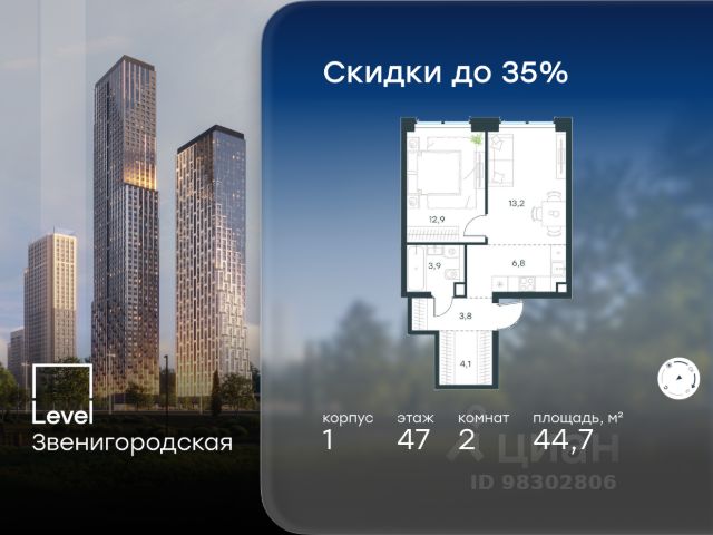 10 минут от Москва-Сити В продаже квартира площадью 72.90 м² с предчистовой отделкой на 26 этаже 55 этажного дома. Квартира расположена в корпусе Anna. JOIS это премиальный жилой комплекс от девелопера MR в районе Хорошёво-Мнёвники. Он включает несколько эффектных небоскрёбов высотой 47-56 этажей, эксклюзивные форматы квартир с панорамным остеклением, подземный двухуровневый паркинг на 239 м/м, собственную приватную инфраструктуру, закрытый ландшафтный парк 2,3 Га с функциональным зонированием и охраняемой территорией. Над проектом работали лучшие команды международных агентств с многолетним опытом: Genpro, S&P, iLight International и другие. Расположение Пешком: - 5 мин. ст. МЦК "Хорошёво"; - 15 мин. ст. м. "Народное ополчение"; - 10 мин. ст. метро "Звенигородская" с 2027 года; - 20 мин. причал "Карамышевский". На автомобиле: - 3 мин. до Звенигородского шоссе; - 5 мин. до ТТК: - 8 мин. до Серебряного бора и Строгинского затона - 10 мин. до ММДЦ "Москва-Сити"; - 40 мин. до аэропорта "Шереметьево"; Благоустройство - собственный ландшафтный парк 2,3 Га; - парк скульптур от Cosmoscow; - консьерж-сервис 24/7; - сервисный лифт и вход; - игровые и спортивные площадки; - коворкинг с библиотекой; - лаунж-зона с камином; - игровые комнаты для детей и клуб для подростков с оборудованием для видеоигр; - спортивная студия для индивидуальных тренировок; - гостиная с мини-кухней; - зоны для выгула собак; - подогрев пешеходных дорожек в зимний период; - автополив зелёных насаждений; - премиальные рестораны, кафе, химчистки, аптеки и супермаркеты. Окружение - 4 парка: Покровское-Стрешнево, Филёвский парк, Серебряный бор и Берёзовая роща; - 15 общеобразовательных заведений, в том числе две школы из самых лучших в Москве: государственная школа "Интеграл" и частная "Хорошкола"; - спортивное сооружение "ВЭБ Арена", домашний стадион ФК ЦСКА; - крупнейший в Европе торгово-развлекательный центр "Авиапарк".