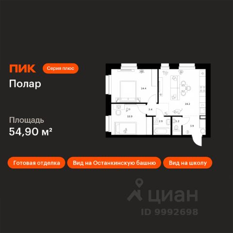 Продаётся 2-комн. квартира площадью 54,9 кв.м на 27 этаже 45 этажного дома (Корпус 1.4, Секция 1) проекта ПИК Полар. Светлый просторный подъезд на уровне земли, функциональная планировка, большие окна, c отделкой. "Полар" расположен в двух минутах пешком от Медведковского заказника и вблизи метро "Медведково". Жилой квартал "Полар" строится на севере Москвы в районе Северное Медведково, в 17 минутах пешком от станции метро "Медведково". Все дома в "Поларе" - с индивидуальным дизайном. Над проектом работали сразу два архитектурных бюро - голландцы de Architekten Cie и российская студия Kamen Architects. Благодаря сочетанию двух разных направления в архитектуре, весь квартал будет выглядеть очень оригинально. У голландцев получились дома с чёткими линиями, динамичной архитектурой и панорамными балконами. А в башне Kamen отражается стремительность большого города и созерцательное спокойствие лесопарка. В квартал входит 6 жилых домов разной высоты, собственный детский сад, подземный двухэтажный паркинг, места для спорта, прогулок и отдыха. В просторных лобби - два выхода на уровне земли без порогов и пандусов. На входе установлены IP-домофоны, которыми можно управлять со смартфона. А на первых этажах откроются магазины, кафе и разные полезные сервисы. С верхних этажей "Полара" откроется впечатляющий вид на Медведковский заказник и Москву. В наших дворах мы установим удобные лавочки со встроенными портами USB и Type-C для зарядки мобильных устройств. Не нужно будет возвращаться домой, чтобы зарядить смартфон или ноутбук: можно весь день работать на свежем воздухе или сколько угодно снимать на видео играющего на площадке ребёнка. В шаговой доступности город построит общеобразовательную школу на 350 мест. Район Северное Медведково, где расположен "Полар", входит в городскую программу "Индустриальные кварталы". По ней бывшие промышленные зоны переделывают в комфортные для жизни пространства. Рядом с "Поларом" уже есть спортивный комплекс, новая школа, МФЦ и поликлиники. Артикул 874467 (Застройщик АО "Специализированный застройщик "ТМП 20") 2-комнатной квартиры с евроремонтом в районе Северное Медведково в Москве.