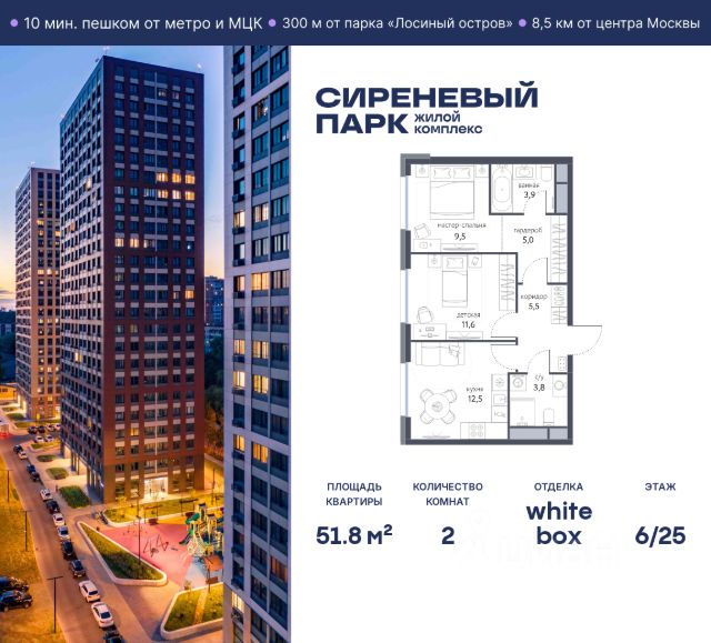 Продаётся просторная 2-комнатная квартира общей площадью 40.5 м² на 3 этаже в новом жилом комплексе "Сиреневый парк", расположенном в Восточном административном округе Москвы на улице Тагильская. Всего 10 минут ходьбы от станции метро "Бульвар Рокоссовского" и одноимённой платформы МЦК. Высококачественное монолитное строительство гарантирует сохранение тепла в доме, а наличие квартир с предчистовой и чистовой отделкой позволяет вам сэкономить время и сразу же переехать в свое жилье после покупки. Благодаря разнообразию планировок вы сможете выбрать идеальный вариант, соответствующий вашим предпочтениям и образу жизни. Предлагаются квартиры: - с просторными кухнями-гостиными, - с нишами для хранения вещей и отдельными гардеробными, - мастер-спальни с собственными санузлами, - большие комнаты с высокими потолками (2,9 м) и с увеличенными безопасными окнами (1,95 м) , которые наполнят ваш дом естественным светом; - с чистовой отделкой по двум дизайн-проектам на выбор; - с остекленными лоджиями и панорамными видами на лес. Каждая деталь в этом доме создана для вашего комфорта: - безбарьерная среда, - бесшумные скоростные лифты, - машиноместа в отапливаемом подземном паркинге и кладовые на -1 этаже с доступом из лифта, - развитая инфраструктура с супермаркетами, кафе, фитнес-клубами, салонами красоты и частным детским садом обеспечивает максимальное удобство жителям. В 300 метрах от ЖК расположен Национальный парк "Лосиный остров". Способы покупки: 100%, Trade-in, Семейная ипотека без наценки, стандартная ипотека. Запишитесь на просмотр в офис продаж и получите свою персональную скидку по акции Назови свою скидку. ЖК "Сиреневый парк" — гармония в деталях, совершенство в каждом моменте. Застройщик проекта - AFI Development.