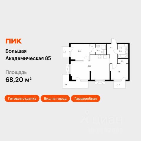 Продаётся 2-комн. апартаменты площадью 68,5 кв.м на 3 этаже 24 этажного дома (Корпус 3.6, Секция 2) проекта ПИК Большая Академическая 85. Светлый просторный подъезд на уровне земли, функциональная планировка, большие окна, c отделкой. "Большая Академическая 85" возводится в Тимирязевском районе — одном из самых тихих и зелёных мест в Москве. От домов до метро "Окружная" — 15 минут пешком, а до станции МЦК "Лихоборы" — 11 минут. Рядом с "Большой Академической 85" есть всё необходимое для комфортной жизни: поблизости работают семь детских садов, шесть школ, три вуза и два торговых центра. Вокруг много парков, в которых приятно гулять и отдыхать. В жилой квартал входят одиннадцать корпусов, в которых есть квартиры и апартаменты. Переменная высота домов — от 11 до 24 этажей — создаёт ощущение простора и позволяет солнечному свету свободно проникать во дворы и комнаты. Фасады природных цветов украшены разными фактурными элементами, поэтому каждый дом выглядит по-особенному. В домах просторные и светлые подъезды без ступеней и пандусов, с выходами во двор и на улицу. На первых этажах домов — магазины и кафе. Для владельцев автомобилей предусмотрен подземный паркинг, а для самых маленьких жителей — собственный детский сад, который объединён с начальной школой. В зелёных дворах-парках оборудованы современные детские площадки и места для отдыха. Ещё на территории проекта есть Игровое пространство — большое игровое пространство для детей, где будет интересно и малышам, и подросткам. Артикул 924703 (Застройщик ООО "СПЕЦИАЛИЗИРОВАННЫЙ ЗАСТРОЙЩИК ЛИХОБОРЫ") Продается 2-комнатная квартира с евроремонтом в районе Тимирязевский в Москве.