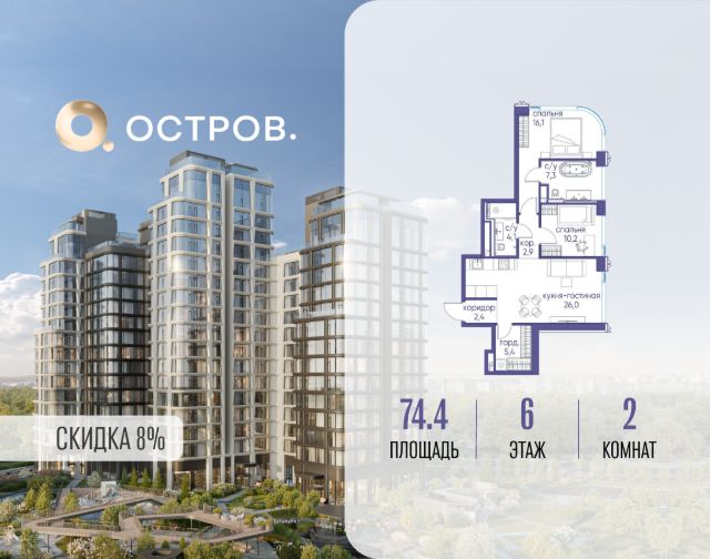 Скидка до 8% действует до 31.03.2026 г. при 100% оплате и не субсидированной ипотеке. Продаётся 2-комн. квартира от застройщика: общая площадь 58.20 м², жилая 29.90 м², кухня 18.20 м², 5-й этаж, жилой квартал "Остров 14", корпус 1 (секция 1). Срок сдачи: 2 квартал 2029 года. 2 совмещенных санузла. Квартира продаётся с чистовой отделкой и мебелью! Идеальный вариант для тех, кто приобретает недвижимость для сдачи в аренду! Инвестиционный продукт для получения постоянного дохода. Остров.14 ДОХОДНЫЙ ДОМ - ЧАСТЬ ПРОЕКТА "ОСТРОВ", В 10 МИНУТАХ ОТ МОСКВА-СИТИ, В 15 МИНУТАХ ЕЗДЫ ОТ САДОВОГО КОЛЬЦА. Квартиры с отделкой и мебелью, и с управлением "под ключ" Постоянный доход для инвесторов, отельный сервис для арендаторов Востребованные для аренды планировки: студии, 1- и 2-комнатные квартиры 28-64 м2 Полная комплектация квартир: отделка, мебель, бытовая техника, кондиционеры Постоянный поток арендаторов - 10 минут от Москва-Сити, 5 минут от метро "Мневники", самодостаточная инфраструктура в квартале и собственная клубная инфраструктура в доме, спортивный, рекреационный и деловой кластеры на территории ОСТРОВА 2-комнатной квартиры с евроремонтом на улице Нижние Мневники в Москве.