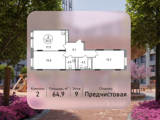 Продается двухкомнатная квартира с отделкой в 9 фазе города-парка "Первый Московский". Общая площадь квартиры - 51,5 кв. м, этаж 7 из 19. Срок сдачи - 2 квартал 2027 года. Тип дома - монолитный. ТОЛЬКО ДО 31 МАРТА выгодные условия на приобретение квартиры в ипотеку или рассрочку. Звоните - и мы подберем оптимальное предложение под ваш запрос! Корпус состоит из 3 секций. Город-парк "Первый Московский" расположен всего в 7 км по Киевскому шоссе от МКАД на территории Новой Москвы. Из города-парка прямой выезд на Киевское шоссе и трассу Солнцево-Бутово-Варшавское шоссе. ТРАНСПОРТНАЯ ДОСТУПНОСТЬ: - 5 мин. на личном автомобиле или 10 мин. на автобусе 189, 147, 193 до станции метро "Филатов Луг" - 5 мин. на личном автомобиле или 12 мин. на автобусе 863 до станции метро "Саларьево" - 6 мин. на личном автомобиле или 15 мин. на автобусе 333 до станции метро "Рассказовка" РАЗВИТАЯ ИНФРАСТРУКТУРА В ОКРУЖЕНИИ: - общеобразовательная школа 2120 (корпуса д1, д7, ш1-ш5) - детский сад 2120 (корпуса д2, д9) - школа искусств - городская больница, детская поликлиника, филиал 5 - подстанция скорой помощи 58 и пожарно-спасательный центр 313 - отдел полиции, отдел ГИБДД - торговые центры "Столица" и "Новомосковский" - стадион, каток, бассейн - кафе, продуктовые магазины, аптеки, фитнес-центры, салоны красоты и пр. БЛАГОУСТРОЙСТВО: - дворы без машин - разнообразные детские площадки и развивающие комплексы - детские площадки разделены по возрастным группам - максимальная близость корпуса к парку "Филатов луг" - озеленение территории с учетом зонирования, островками для отдыха ОСОБЕННОСТИ АРХИТЕКТУРЫ: - безбарьерные входные группы - велопарковка на -1 этаже - колясочные в каждой входной группе - коммерческие помещения на 1 этаже в трех секциях - кладовые помещения расположены на жилых этажах и на -1 этаже - в каждой секции корпуса - 4 лифта: 2 пассажирских, 2 грузовых - видеонаблюдение установленное в холлах первых этажей, у подъездов и на прилегающей территории АВТОРСКИЙ ДИЗАЙН: Входные группы выполнены по авторскому дизайну, оснащены системой "тёплый пол". В каждой входной группе будет располагаться комфортабельная зона ожидания, почтовые ящики с ячейкой для спама, колясочная, акцентные пуфы и столик.