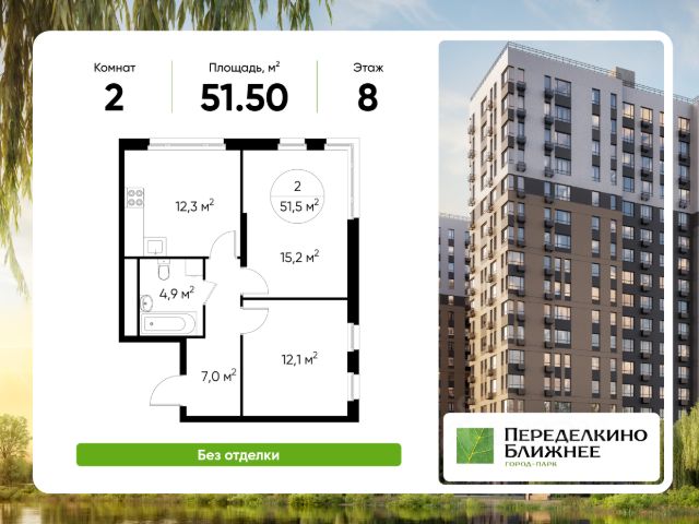 Продается двухкомнатная квартира в городе-парке "Переделкино Ближнее". Общая площадь квартиры - 40,6 кв. м, этаж 2 из 17. Срок сдачи - 1 квартал 2028 года. Тип дома - монолитный. Корпус расположен в новой 13 фазе строительства и состоит из 8 секций с переменной этажностью 12-17 этажей. Все секции без отделки. Около 13 фазы запланировано строительство многоуровневого паркинга на 300 м/мест. 13 фаза имеет уникальное расположение и находится непосредственно на берегу Федосьинского пруда, который является сердцем города-парка "Переделкино Ближнее". Город-парк "Переделкино Ближнее" расположен в 8 км от МКАД по Боровскому шоссе. ТРАНСПОРТНАЯ ДОСТУПНОСТЬ: - 15 минут пешком до станции МЦД-4 "Мичуринец" - 25 минут пешком до станции метро "Рассказовка" Солнцевской линии - 30 минут до центра Москвы - 2026 г. - открытие трассы Солнцево-Бутово-Варшавское шоссе РАЗВИТАЯ СОЦИАЛЬНАЯ ИНФРАСТРУКТУРА: - 7 детских садов, 3 школы - банки, продуктовые магазины, аптеки, фитнес центры, салоны красоты и пр БЛАГОУСТРОЙСТВО: - дворы без машин - игровые зоны и развивающие детские площадки - зоны для созерцательного и медитативного отдыха - зоны для занятий спортом ОСОБЕННОСТИ АРХИТЕКТУРЫ: - высокие потолки от 3,03 м - безбарьерные входные группы - колясочные в каждой входной группе - кладовые помещения расположены на -1 этаже каждой секции - в каждой секции 2 лифта: 1 пассажирский, 1 грузовой - на фасаде предусмотрены корзины для установки кондиционеров АВТОРСКИЙ ДИЗАЙН: Входные группы выполнены по авторскому дизайну, благодаря панорамному остеклению наполнены естественным светом. В каждой входной группе будет располагаться комфортабельная зона ожидания с возможностью зарядить электронные устройства, почтовые ящики, колясочная, акцентные пуфы и столик.
