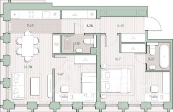 О квартире Продаётся 2-комнатная квартира общей площадью 55.79 кв.м. без отделки. Квартира расположена на 2 этаже корпуса 4.2 в жилом комплексе бизнес-класса "Среда на Кутузовском" в пешей доступности от метро "Кунцевская". О жилом комплексе Комплекс предназначен для людей, которые ставят в приоритет свой комфорт, умеют прислушиваться к себе и понимают, что нужно для внутренней гармонии. Это проект для тех, кто ценит свое время и использует его правильно. Для тех, кто умеет радоваться тому, что есть. "Среда на Кутузовском" — личное место силы и гармонии в двух шагах от центра города. Инфраструктура Жилой комплекс строится в престижном и зеленом Кунцево. Здесь расположены различные торговые центры, престижные учебные заведения (МГУ, РЭУ им. Плеханова, Финансовый университет при Правительстве РФ, РУДН) медицинские клиники. Представлены широкие возможности для поклонников разных видов спорта: от бега в ближайших парках и велозаездов до гребли, баскетбола, футбола, хоккея, фигурного катания и катания на лыжах. На каждый день подойдет World Class с открытым бассейном — он находится всего в 1 минуте от дома. Выбор мест для прогулок также разнообразен: Суворовский парк, лесной массив Крылатских холмов, Москворецкий парк и природный заказник "Долина реки Сетунь". 10 мин пешком: -м. Кунцевская -вся необходимая инфраструктура До 15 мин на авто: -Северо-Западная хорда -Кутузовский проспект -Рублевское шоссе -МКАД -Можайское шоссе Особенности Проект сочетает в себе ритмичность и динамичность, благодаря своей архитектуре, при он этом окружен зеленью и парками. "Среда на Кутузовском" погружает в активный и разнообразный образ жизни, дает вариативные возможности досуга и вдохновляет на новые свершения. —Зоны отдыха у воды —Принцип многослойности в архитектуре —Зона барбекю —Пентхаусы —Умный паркинг —Гайдбук по управлению умным домом —Окна в пол на всех этажах