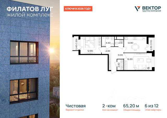 Продается 2-комн. квартира площадью 64,4 кв.м на 1 этаже 20 этажного дома в ЖК "Филатов Луг" от федерального девелопера ГК "Вектор". Расположение Жилой квартал "Филатов Луг" расположен в тихом и экологически чистом районе Новой Москвы, в поселении Московский, рядом с деревней Картмазово. Транспортная доступность На общественном транспорте (автобусы 611, 890) до станции метро "Саларьево" можно добраться примерно за 10 минут. Рядом также находится строящаяся станция "Филатов Луг". На автомобиле до МКАД — около 6 км по Киевскому шоссе, дорога до центра Москвы занимает примерно 40 минут. Инфраструктура района Район хорошо развит, на территории квартала запланирована вся необходимая инфраструктура: школа, детские сады, а на первых этажах домов на территории . В шаговой доступности находятся: Магазины: супермаркеты "Пятёрочка", "ВкусВилл" и гипермаркеты строительных товаров. Отдых и спорт: горнолыжный комплекс "Ново-Переделкино", бассейн "Московский", развлекательный парк. Образование и медицина: в соседнем городе-парке "Первый Московский" работают школы и детские сады, ближайшая поликлиника находится в 14 минутах езды*