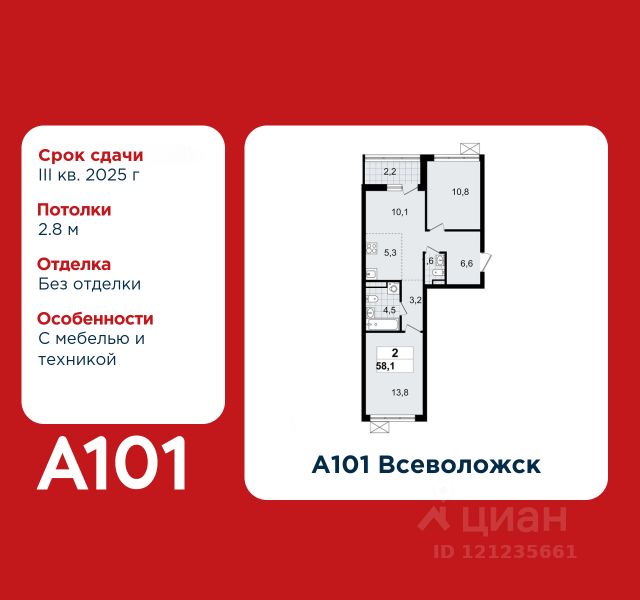 Продается двухкомнатная квартира 284 в новостройке ЖК "Дом на Зорге" по адресу Москва, САО, Сокол, улица Зорге, 25с2, Москва, 125252. Общая площадь квартиры - 42.50 кв. м., этаж 13 из 16, секция 2. Тип проекта, по которому построен дом - монолит, компания-застройщик - ООО "А101". Стоимость квартиры - 23692775 Р. Срок сдачи - 4 квартал 2025. ПРЕДЛОЖЕНИЯ ОТ ЗАСТРОЙЩИКА В ОКТЯБРЕ 2025: Ипотека от 13,9 % для всех! На весь срок. "Семейная ипотека" вернулась. Ставка от 3,5 % на весь срок! Без удорожания! Выгодное ипотечное комбо: Ипотека от 2200 р./мес. и от 6 % после рождения ребёнка! Ипотека для всех "Держи пять!" - ставка 5 % на 2 года! *более подробную информацию по скидкам и акциям уточняйте в отделе продаж Дом на Зорге" - жилой комплекс бизнес-класса в историческом районе Москвы со сложившейся инфраструктурой.Корпуса переменной этажности с элегантными монохромными фасадами гармонично вписаны в статусное окружение. Архитектурно-художественная подсветка подчеркнёт изысканные очертания дома.В приватном и тихом дворовом пространстве появится фонтан со слэбами натуральных камней, детские площадки, места для настольных игр и спокойного отдыха. Безопасность обеспечат видеонаблюдение, центральный пост охраны и система контроля доступа. Округ, где строится "Дом на Зорге" (САО), известен ведущими медицинскими центрами страны, престижными учебными заведениями (включая школы), спорткомплексами, бизнес-центрами. В лобби с дизайнерской отделкой предусмотрены круглосуточный консьерж-сервис, колясочные, зоны ожидания, аппараты для чистки обуви. Подземный 2-уровневый паркинг оснащён системой автоматического распознавания номеров. Всего в 350 м - станция метро "Зорге". До "сердца" столицы - 11 км. Преимущества "Дома на Зорге" - престижная локация с развитой инфраструктурой - 350 м от станции метро (МЦК) "Зорге" - закрытый приватный двор с уникальным благоустройством