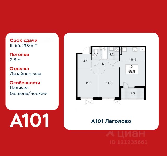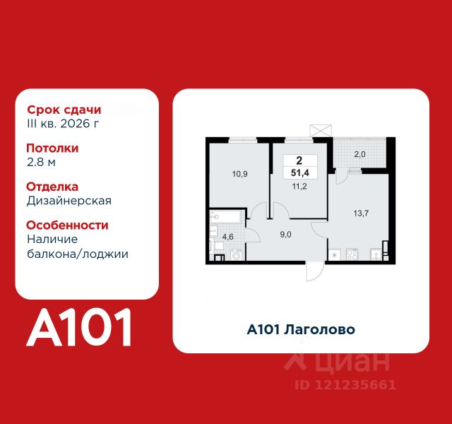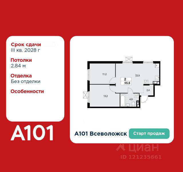 2-комнатная квартира площадью 45.90 в ЖК "А101 Всеволожск" c лоджией на 9 этаже. Квартира white box. Вид из окна во двор. В квартире 1 санузел. Высота потолков 2.8 м. Предложения от застройщика на декабрь 2025: - Гибкая рассрочка 20 000 руб/мес. и первым взносом 10%. ОТДЕЛКА Квартира с предчистовой отделкой предполагает: качественную стяжку на полах под финишное покрытие, потолок с обеспыливающей грунтовкой белого цвета, ровные стены с покрытием штукатурка. Выполнены все работы по проведению электрики. На все отделочные работы от застройщика предоставляется гарантия. Если вы хотите дозаказать дизайнерскую отделку, обращайтесь к нашими специалистами. ОСОБЕННОСТИ ПЛАНИРОВКИ ПАРАДНАЯ В каждой парадной предусмотрены места для хранения велосипедов и колясок, гостевой санузел, лапамойка (место для мытья домашних животных или колес велосипедов) и удобная зона ожидания для гостей. ДВОРЫ И ОКРУЖЕНИЕ Просторные дворы свободны от машин и закрыты от посторонних. Большую часть комплекса займут благоустроенные зелёные зоны, теневые сады и городские общественные пространства с развитой тротуарной сетью и велодорожками. Каждый дом оборудован системами видеонаблюдения и контроля доступа. Не хватает средств на покупку кладового помещения? Оформите ипотеку на квартиру и добавьте к ней часть стоимости кладовой. ЗАСТРОЙЩИК ГК "А101" - крупный инвестиционно-строительный холдинг, занимает 6-е место по объему строительства в России (по данным "Единого ресурса застройщиков" на 2023 год). НКР присвоило ГК "А101" кредитный рейтинг A+.ru, подтверждая его надежность и финансовую устойчивость для завершения строительства ЖК.