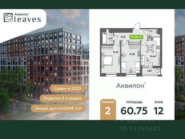 • ✓ В базе Циан 510 2-комнатных квартир 2-комнатные квартиры в ипотеку от застройщика Группа Аквилон в Москве
