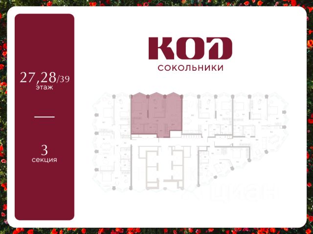 В семейном жилом квартале, расположенном в окружении более 500 га леса и объектов исторического наследия, продается 2-комнатная квартира площадью 55.2 кв. м без отделки. Квартира расположена на 17 этаже 39-этажного корпуса 2.2 жилого квартала бизнес-класса КОД Сокольники от девелопера Новая Эра. Отличная транспортная доступность - 3 мин. пешком до станции МЦД-3 "Митьково"; - 7 мин. пешком до станции метро "Сокольники"; - Удобный выезд на Русаковскую улицу; - 5 мин. на авто до ТТК; - 15 мин. на авто до Садового кольца. Продуманный архитектурный проект - Выразительная архитектура, созданная бюро "Остоженка"; - 70% квартир в квартале - видовые, что позволяет ежедневно наслаждаться панорамами на парк Сокольники, Останкинскую телебашню, исторический центр и Алексеевский монастырь; - 30% квартир - угловые. Увеличенные оконные проемы, панорамное остекление и продуманное расположение комнат усиливают эффект обзорности: гостиные и спальни получают максимум дневного света и живописные виды, которые становятся частью интерьера; - Высокие потолки от 3 метров в типовых планировках; - Дизайнерские лобби от модной студии 211.Studio; - Двухуровневый паркинг с подогреваемой рампой и пологим заездом, подходящим даже для спорткаров; Расположение Семейный жилой квартал КОД Сокольники - это дома бизнес-класса в престижном районе Сокольники. Район отличает хорошая транспортная доступность: несколько минут пешком до станции метро "Сокольники" и платформы МЦД-3 ("Митьково"), регулярные трамвайные и автобусные маршруты, удобный выезд на Русаковскую улицу и Третье транспортное кольцо. До Садового кольца можно доехать за 15 минут. Для пешеходов и велосипедистов в парковой зоне будут оборудованы широкие тротуары и велодорожки, обеспечивая комфортные условия для активного образа жизни. Внутренняя инфраструктура Резидентам будет доступна развитая клубная инфраструктура: собственный фитнес-рум, коворкинг с панорамным видом на парк, игровая комната для детей, пространства для мастер-классов и просторная гостиная, которую можно использовать для отдыха, просмотра кино или проведения мероприятий. На первых этажах жилых домов разместятся объекты стрит-ритейла: кафе, рестораны, магазины и различные сервисы - от аптек и салонов красоты до ателье и барбершопов. Рядом с жилыми корпусами появится деловой квартал с офисами и торговыми площадями на 75 тысяч кв. м, что делает проект привлекательным для тех, кто ценит возможность жить и работать поблизости. Благоустройство Центральным элементом квартала станет благоустроенный двор-парк площадью 3 га с собственным прудом и зелеными зонами для прогулок и отдыха. В границах двора предусмотрены современные игровые и спортивные площадки: мультифункциональная зона воркаута, площадки для волейбола и стритбола, площадки для пилатеса и йоги, скалодром, а также беговые и веломаршруты. В состав проекта войдет образовательный центр, включающий детский сад для 350 малышей, а также школу на 650 учеников.