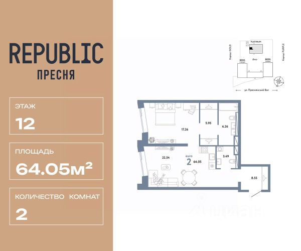 Новая квартира в ЖК "Republic" напрямую от федерального застройщика "Страна Девелопмент". Продается 2комнатная квартира на 5 этаже от застройщика Страна Девелопмент. Площадь квартиры 45,32 кв. м. Дизайн-квартал "Republic" — новый проект премиум-класса в Москве. 10 жилых башен и 4 восстановленных здания локомотивного депо образуют уникальное пространство. "Republic" — место, где вы ощутите гармонию истории и современности. Детский сад, SPA-комплекс с бассейном, гастрономический и шопинг-центры, собственный бульвар и яркие арт-пространства — для жителей предусмотрены все элементы премиального комфорта. Преимущества Уникальная жизненная среда, где инфраструктура включает гастрономию, SPA-комплекс с термами, образовательные и развлекательные заведения, арт-пространство и шопинг-аллеи. Двор от британского бюро "Gillespies": на 4 гектарах закрытого двора расположится 7 игровых зон для разных возрастов с ручьем и сухим фонтаном, арт-галерея под открытым небом и большой прогулочный бульвар. Лобби с террасой в башнях "Reds" — лаконичное пространство галереи-лобби, где можно проводить деловые и дружеские встречи, не нарушая приватности квартиры. В тёплое время года не остаётся пустующей терраса на крыше, которая привлекает непринуждённой атмосферой и прохладительными напитками в баре. Клубная гостиная — стильное пространство оборудовано кухней и залом для торжеств на 40 человек, а для того, чтобы побыть наедине с собой, почитать книгу или провести онлайн-встречу в гостиной оборудована мастерская с библиотекой. Уникальные форматы квартир, где можно реализовать любой жизненный сценарий: от стильного офиса в двухэтажной квартире до угловых лотов с просторными гостиными. А эксклюзивные пентхаусы с высокими потолками и панорамными окнами дарят захватывающие виды на Москву.. Отделка Квартиры сдаются без отделки или в формате White box. При отделке White box уже были выполнены все шумные и грязные работы руками наших специалистов: произведена разводка электричества с установкой подрозетников, установлены откосы из гипсокартона, устроена стяжка пола с шумоизоляцией. Способы покупки Сотрудники "Страна Девелопмент" будут сопровождать вас на каждом этапе сделки, помогут получить одобрение по ипотеке или снизить ежемесячный платеж. - ипотека - рассрочка - с использованием материнского капитала - 100% оплата наличными