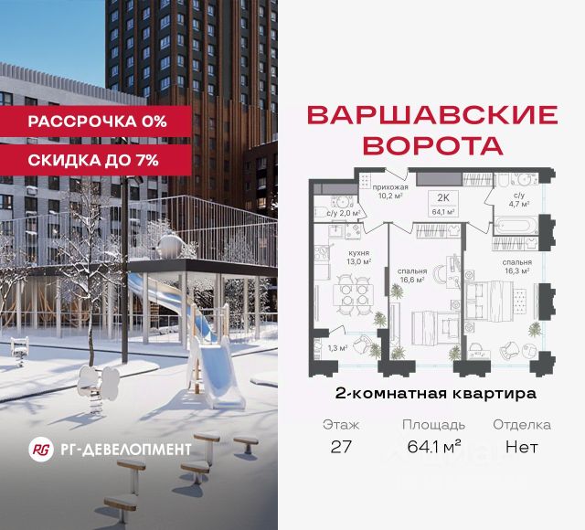Рассрочка 0% + скидка 5%. Первый платёж 50% при ДДУ, второй 50% — через 12 мес. до ввода ЖК. Продаются 2-комнатные апартаменты 54.3 кв.м. в МФК "Варшавские ворота" на 2-м этаже 9 этажного дома. МФК "Варшавские ворота" — это проект, в котором учтен широкий спектр требований: от транспортной доступности и развитой инфраструктуры до архитектурной выразительности и экологического окружения. Апартаменты в МФК "Варшавские ворота" подойдут для тех, кто ищет продуманное жилье в Москве или готовый инвестиционный актив. Апартаменты здесь — это: - возможность жить комфортно в удобном городском формате — с природой, метро, сервисом и паркингом; - возможность купить лот с готовой отделкой, чтобы вложить минимальные инвестиции в ремонт и получить максимум возможностей от сдачи; - экономия на налоге на имущество, кадастровая стоимость апартаментов ниже ~ на 30% кадастровой стоимости квартиры; - высокая инвестиционная доходность объекта за счет более низкой цены покупки по сравнению с квартирой. Коротко о важном: - 1 минута пешком от м. Аннино; - Удобные выезды на Варшавское шоссе и МКАД; - Вид из окон на Битцевский лес и Аннинский лесопарк; - Высота потолков 2,7 - 3 м; - Закрытый двор-парк; - Школы и детские сады в 10-15 минутах пешком от дома; - Технические лоджии для размещения кондиционеров; - Подземный паркинг; - РГ-Девелопмент — ТОП-20 крупнейших застройщиков России. Проект сочетает в себе современную архитектуру и продуманное благоустройство с уникальным природным окружением. Всего в нескольких минутах от дома — девять парков, каскад прудов и крупнейшие лесопарковые зоны Москвы, создающие ощущение жизни в зеленом оазисе посреди мегаполиса. Архитектурная концепция - стиль Чикаго в Москве. Выполнена в минималистичной эстетике с использованием клинкера и декоративного кирпича. Фасады подчеркивают строгие линии и современный стиль, а входные группы разработаны московским бюро Syntaxis. Лобби оформлены с применением керамогранита, декоративной штукатурки и гипсовых панелей, детали из латуни добавляют изысканности. Пространство оживляют гербарии, композиции из сухоцветов и авторские панно. Проект находится в одной минуте пешком от метро "Аннино", в 12 минутах от станции "Улица Академика Янгеля" и рядом с МЦД-2 "Красный Строитель". Для автомобилистов предусмотрен прямой выезд на Варшавское шоссе и два съезда на МКАД, что позволяет быстро добираться в любую часть города. Среди планировочных решений представлены разнообразные форматы: от функциональных студий до просторных 4-комнатных квартир и апартаментов площадью от 22 до 105 м². Высокие потолки усиливают ощущение простора, а продуманные планировки включают мастер-спальни, гардеробные, угловые окна, объединённые кухни-гостиные и несколько санузлов. Центральное пространство комплекса — закрытый двор без машин. Он разделён на функциональные зоны: детские игровые комплексы, спортивные площадки, воркаут-зоны и уютные места для тихого отдыха. На первых этажах разместя