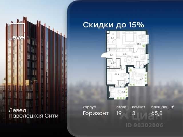 Цена указана с учётом скидки при 100%-й оплате, несубсидированной ипотеке, рассрочке (кроме программы "Рассрочка 0%"). В Даниловском районе столицы (ЮАО) продаётся 2-комнатная квартира площадью 42.70 кв.м без отделки. Квартира расположена на 2 этаже 27-этажного корпуса 14 в жилом комплексе бизнес-класса Левел Павелецкая Сити. Высота потолков 3.00м. Престижная локация Жилой комплекс бизнес-класса Левел Павелецкая Сити расположен в престижном Даниловском районе Москвы - историческом центре города в окружении парков, Москвы-реки и новейшей инфраструктуры. В 20 минутах пешком есть 3 станции метро, а в 5 минутах езды на авто - ТТК и Садовое кольцо. - 15 мин. пешком до метро "Павелецкая"; - 20 мин. пешком до станций "Тульская" и "Серпуховская"; - 8 мин. на авто до Кремля; - 10 мин. на авто до парка Горького и парка "Зарядье"; - 20 мин. на авто до башен "Москва-Сити". Авторская архитектура Авторская архитектурная концепция разработана бюро СПИЧ. Облик корпусов этапов 1 и 2 отсылает к стилистике архитектуры классического Нью-Йорка и золотой эпохи Голливуда. Корпуса этапа 4 вдохновлены эстетикой ар-деко. Умное линейное расположение корпусов гарантирует потрясающие виды на исторический центр и Москву-реку из большинства квартир. Дизайнерские лобби Изысканные интерьеры лобби жилого комплекса отсылают к классическим фильмам золотой эпохи Голливуда. Классика в жилом комплексе Левел Павелецкая Сити - не имитация, а современное осмысление лучшего в этом стиле. В каждом вестибюле оборудованы стойки ресепшен, комфортные зоны ожидания, гостевые санузлы, мойки для лап животных, колясочные. В корпусах по 3-4 лифта с прямым доступом в паркинг. Площадь лобби - от 47,9 до 114,9 кв. м, высота потолков - до 5,46 м. Благоустройство и инфраструктура Для создания благоустройства было приглашено 2 ведущих бюро - ADM и GAFA. Разноуровневое пространство вмещает в себя игровые площадки для детей всех возрастов, тропы здоровья для пеших прогулок, крытые аллеи с качелями, места для работы на свежем воздухе, многофункциональные спортивные площадки - воркаут-зоны, столы для пинг-понга, зоны командных игр. Общая площадь закрытого двора - 4,63 га. Комфорт - это когда рядом всё, что нужно для жизни. В жилом комплексе Левел Павелецкая Сити размещены 85 коммерческих помещений, где откроются супермаркеты, кафе, аптеки и многое другое. В составе проекта также предусмотрены собственный фитнес-клуб, развивающий центр Летово Кидс. Технологии и безопасность - Wi-Fi в лобби и на придомовой территории; - Автоматизированная система контроля и учета ресурсов; - Круглосуточное видеонаблюдение и охрана; - Круглосуточная связь с охраной через приложение, телефон или кол-центр; - Контроль доступа по биометрической системе Face-ID; - Усиленный сотовый сигнал в лифтах и паркинге; - Распознавание номеров автомобилей при въезде/выезде в/из паркинга.