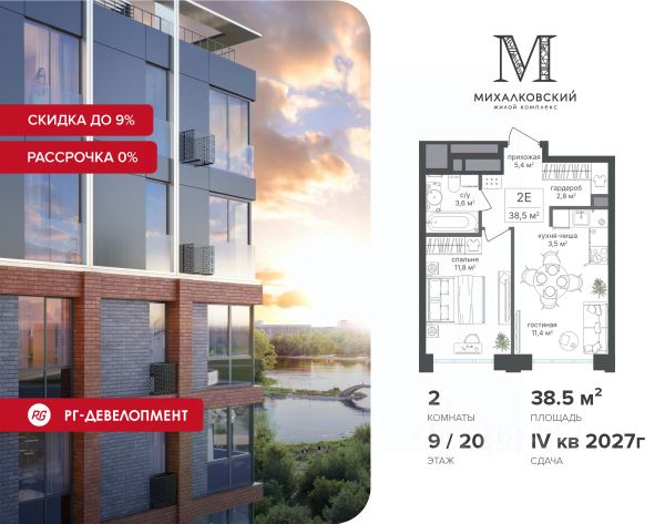 При приобретении квартиры доступна беспроцентная рассрочка с первым платежом от 30%. У покупателя также есть право воспользоваться скидкой в размере 5% от полной стоимости квартиры. - Первый платеж составляет 30% от стоимости объекта и вносится при заключении ДДУ - Второй платеж в размере 30% от стоимости объекта вносится через 6 месяцев с даты заключения ДДУ - Остаток 20% через 12 месяцев с даты заключения ДДУ, но не позднее 30.06.2027 - Остаток 20% не позднее 30.06.2027 - Действует на приобретение квартир в корп. 2, 7 Продаётся 2-к квартира 35,4 кв.м. в ЖК "Михалковский" на 4-м этаже 20 этажного дома. Скидка 9% при покупке квартиры! Ипотека для каждого! Полная стоимость кредита от 12,380% до 18,537%. Ставка от 0,11% в АО "Альфа-Банк", ген. лицензия ЦБ РФ 1326 от 16.01.2015. Ставка фиксируется на первые 12 месяцев, далее полная стоимость кредита от 22,022% до 24,599% ставка 21,59%. Первоначальный взнос — от 20,1% от стоимости квартиры. Срок кредитования — от 4 до 30 лет. Компания "РГ-Девелопмент" предоставляет скидку на квартиры в жилом комплексе. Акция действительна до 30.04.2026 включительно. Для того чтобы воспользоваться предложением, необходимо подписать договор на приобретение недвижимости до 30.04.2026 включительно. Действует программа "Растет семья - растет и квартира". Компания "РГ-Девелопмент" вошла в ТОП-10 девелоперов по объёму введённого жилья в "Старой Москве" по итогам 2025 года. Прямая продажа от застройщика! Квартиры без отделки. Срок сдачи IV кв. 2027г. Особенности проекта: Завораживающие виды Красивое благоустройство Уникальная локация для Москвы (рядом Головинский парк, пруды, усадьба Михалково) Рядом с центром В проекте присутствует: архитектура голландского бюро MLA+, зеленые зоны, транспортная доступность, благоустроенная территория, подземный паркинг, детский сад и выход на Головинский парк с пятью прудами. Название комплекса указывает на одну из его черт - соседство с имением Михалково. Позвольте себе жить в месте, где проводили свой досуг династии Дашковых и Паниных.