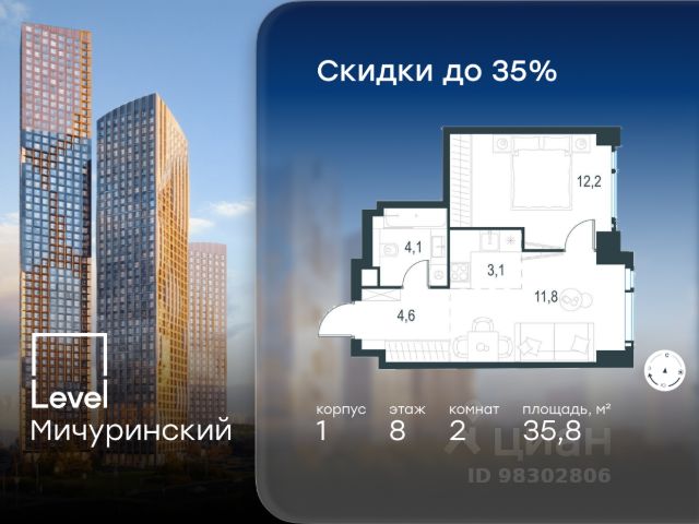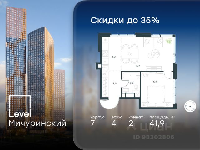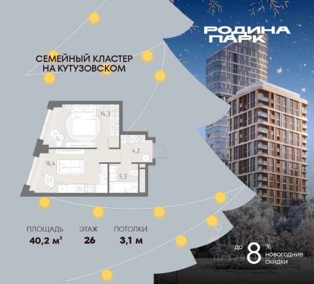 В жилом кластере Родина Парк рядом с природным заказником Долина реки Сетунь продаётся 2-комнатная квартира. Продуманная европланировка, которую легко зонировать под ваши запросы. Потолки от 3,1 м. "Родина Парк" — премиальный семейный кластер с образовательным медиакластером, строящийся на западе Москвы в окружении природного заповедника "Долина реки Сетуни". • Скидки недели на избранный пул лотов • Рассрочка 0% на выгодных условиях до 2 лет • Семейная ипотека, подбор комбо-вариантов ипотечных программ прямо в офисе продаж • Скидки 8% при 100% оплате или ипотеке. ЛОКАЦИЯ: 8 минут пешком до станции БКЛ "Давыдково". 12 минут на автомобиле до Нового Арбата. Удобные выезды на Кутузовский проспект, Аминьевское шоссе. ИНФРАСТРУКТУРА И СЕРВИСЫ ДЛЯ ЖИТЕЛЕЙ - Уникальная экосистема для развития, здоровья и творчества на территории 3,5 Га: - Первый в России образовательный медиакластер (с участием Русской медиагруппы) для творческого развития детей и взрослых с возможностью получить востребованную профессию в сфере шоу-бизнеса. - Инфраструктура и сервисы для семей с детьми на территории жилого кластера (частный детский сад, детские игровые пространства, творческие студии для занятий музыкой и танцами, безопасная и комфортная среда для детей и родителей), событийно-культурная площадка для проведения семейного досуга); - Здоровая среда (биохакинг-центр, фитнес-зал и спортивная инфраструктура во дворе, медитационные пространства, инженерные решения для освещения, свежего воздуха и очистки воды, сервисы красоты и поддержания активного долголетия); - Сервисы заботы (инфраструктура комфорта - подземный паркинг, кладовые, колясочные, консьерж- сервис, умный дом, мобильное приложение, профессиональная управляющая компания, сервисы охраны и обеспечение абсолютной безопасности) - Комьюнити резидентов (социальные пространства для дружеского и делового общения - летний атриум с уличным кинотеатром, зоны отдыха, кафе и рестораны, комьюнити-сервис с культурно- событийной программой в медиакластере); - Модуль благосостояния (комфортные пространства для работы и саморазвития - коворкинги и переговорные). ИНФРАСТРУКТУРА РАЙОНА: Насыщенная образовательная среда: филиалы МГИМО, МГУ, МГТУ, Сколково. Топовые школы: 6 лучших частных школ Москвы и области (Forbes) в 10 минутах езды. Природное окружение для пеших прогулок, спорта и отдыха. "Родина Парк" — это место, где растут и дети, и ваши возможности. Экосистема, где всё подчинено развитию — физически, профессионально, творчески.