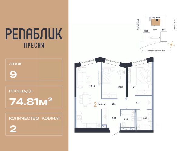 Рассрочка 0% с первым взносом от 20%, ипотека с субсидией или наличные. Подберём способ оплаты индивидуально. Продается 3комнатная квартира на 2 этаже от застройщика Страна Девелопмент. Площадь квартиры 65.68 кв. м. Дизайн-квартал "Republic" — новый проект премиум-класса в Москве от федерального застройщика "Страна Девелопмент". ЦАО, Пресня, 7 мин. от метро "Белорусская". 10 жилых башен и 4 восстановленных здания локомотивного депо образуют уникальное пространство. "Republic" — место, где вы ощутите гармонию истории и современности. За 12 мин. вы сможете дойти до Московского зоопарка, за 10 мин. на авто доехать до Патриарших прудов и Белого дома. Преимущества • Благоустройство. SPA-комплекс с бассейном и термами, гастрономический, учебный и шопинг-центры, приватный бульвар и яркие арт-пространства — для жителей предусмотрены все элементы премиального комфорта. • Панорама на центр. Наслаждайтесь видами ЦАО каждый день: панорама на историческую Пресню и башни Москва-Сити — из своей квартиры или с приватной террасы на крыше. • Концептуальное лобби в каждой башне. С общей террасой на кровле, с библиотекой, коворкингом и фитнес-рум. Стойка консьержа перетекающая в бар и др. • Современные форматы квартир. Свободные планировки, с террасой или балконом, с возможностью установки камина, от 1-комнатных до пентхаусов. Отделка Квартиры сдаются без отделки или в формате White box. При White box уже выполнены все шумные и грязные работы: произведена разводка электричества с подрозетниками, установлены откосы из гипсокартона, устроена стяжка пола с шумоизоляцией и др. Способы покупки Сотрудники "Страна Девелопмент" будут сопровождать вас на каждом этапе сделки, помогут получить одобрение по ипотеке или снизить ежемесячный платеж. - ипотека (стандартная/с субсидией/траншевая) - рассрочка (с ПВ от 20%) - с использованием материнского капитала - оплата наличными