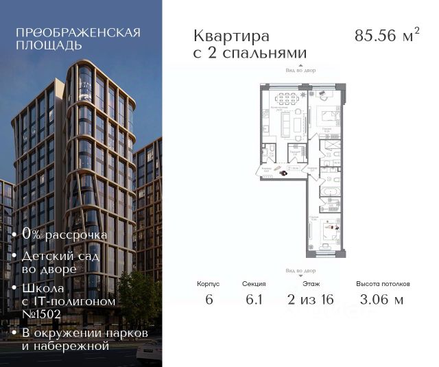 5033 Акция! Скидка на паркинг 300 000 рублей! Дизайн проект в подарок! Возможна Рассрочка! Предлагается к продаже просторная евродвухкомнатная квартира с панорамной лоджией в жилом комплексе Бизнес класса - Вдохновение, расположенном в центральной части района Богородское. Одно из главных преимуществ района - это соседство парком Сокольники и с национальным парком Лосиный остров, где можно посетить экскурсию, поселиться в глэмпинге, покататься на лошадях или просто прогуляться. Дом кирпично-монолитный с ж/б перекрытиями построен в 2023 году, состоит из двух корпусов переменной этажности: из корпуса А высотой от 7 до 10 этажей и корпуса Б от 6 до 9 этажей. Дом небольшой, всего 212 квартир. На площадке от 4 до 6 квартир. Класс энергоэффективности В- т.е. высокий. Высота потолков - 3,2 метра. Квартира находится на 5 этаже, имеет интересную планировку: Общая площадь 49,2 м2+лоджия 8.8 м2, кухня-гостиная 14.7 с выходом на лоджию кв.м., спальня 16.1 м2 с выходом на лоджию, совмещенный санузел 4.3 м2, гардеробная 6.4 м2, прихожая 8 м2. Окна смотрят на детскую площадку. Квартира в данный момент свободной планировки, для Вас разработано дизайнерское решение возможного варианта с кухней-гостиной, дизайн-проект в подарок покупателю, который будет доработан специально для Вас, в соответствии с Вашими пожеланиями. Если это не потребуется, то просто предоставим скидку. Фасад дома стильно задекорирован фибробетоном и клинкерной плиткой. Малоэтажная застройка делает район приятным и удобным для проживания, поскольку трафик на дорогах даже в часы пик низкий, при этом в пешей доступности от комплекса находятся две станции метро: до Бульвара Рокоссовского - 20 минут, до Преображенской площади - 24 минуты, что касается личного транспорта, то здесь есть несколько вариантов маршрутов выезда на основные магистрали: на проспект Мира можно попасть по Ростокинскому проезду, в центр ведёт Большая Черкизовская улица, но местные жители используют и набережную реки Яузы. В пешей доступности вся необходимая инфраструктура: школа 1797 и детский сад Теремок, детская городская поликлиника 28 и консультативно-диагностический центр 2, рядом магазины Дикси, Пятёрочка, Магнит, Красное/Белое, пункт выдачи заказов WB и Озон, стадион Спартаковец. Закрытый двор дома имеет систему видеонаблюдения и концепцию двор без машин. Для детей во дворе имеется детская площадка с горкой и качелями, скамейками для отдыха. В каждой секции есть место консьержа, колясочная и туалет. Входные группы оформлены в приятной нейтральной гамме. Стены оштукатурены, окрашены и облицованы керамогранитной плиткой. В распоряжении жильцов-один пассажирский и один грузовой лифт. Квартир в секции немного, поэтому вполне достаточно. Подземный паркинг насчитывает на 123 места, цена паркинга 2 500 000, при по покупке квартиры скидка на паркинг 300 000 рублей. На территории предусмотрено 23 парковочных места. Квартира продается в прямой продаже, никто не зарегистрирован, полная стоимость в договоре.