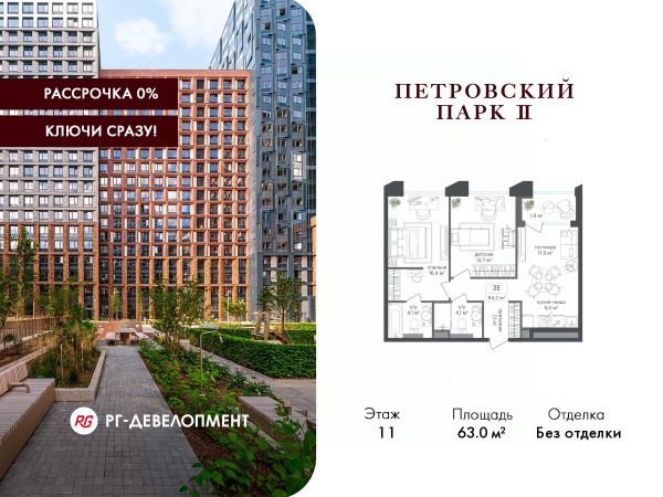 Рассрочка 0%. Первый платёж 30%, второй - не позднее 31.12.2026 г. Продаётся 2-комнатная квартира 67.4 кв.м. в ЖК "Петровский парк II" на 6-м этаже 24 этажного дома. ЖК "Петровский парк II" — жилой комплекс в Савёловском районе, где город ощущается иначе. Здесь история и масштаб Москвы не давят, а задают фон для спокойной, уверенной жизни рядом с центром. Это место, где статус читается не в громких формулировках, а в окружении, архитектуре и ощущении пространства. Коротко о важном: • Район с глубоким историческим контекстом и парковым окружением; • 5 минут пешком до метро "Динамо", рядом с деловой и культурной жизнью города; • Редкое сочетание: энергия мегаполиса и тишина зелёных аллей; • Архитектура от бюро Синтаксис с пластикой форм и индивидуальным характером фасадов; • Панорамные виды на город и зелёные массивы Петровского и Тимирязевского парков; • Закрытый двор без машин, вдохновлённый эстетикой дворцовых садов; • Просторные входные группы с высокими потолками и выверенной, респектабельной эстетикой; • Частный детский сад во дворе; • Подземная парковка и кладовые; • РГ-Девелопмент - ТОП-20 крупнейших застройщиков Москвы. Расположение комплекса формирует особое ощущение свободы выбора. Утром - прогулка по тенистым аллеям Петровского парка, днём - работа и встречи в деловых кластерах поблизости, вечером - культурные события, рестораны и городские пространства в нескольких минутах пути. Здесь расстояния измеряются не километрами, а шагами от дома. Архитектура "Петровского парка II" задумана как современный архитектурный акцент района и одновременно как уважительный диалог с исторической средой. Асимметричные объёмы, волнообразные элементы и игра света и тени создают выразительный, но сдержанный силуэт. Архитектура наполнена воздухом и визуальным ритмом, оставаясь спокойной и уверенной. Общественные пространства продолжают эту логику. Два парадных вестибюля с высокими потолками и благородной цветовой палитрой воспринимаются как пространства, где хочется замедлиться: встретить гостей, перевести дыхание после дня или просто почувствовать уровень среды, в которой вы живёте. Внутренний двор комплекса - это отдельный мир, закрытый от машин и городского шума. Продуманное благоустройство территорий отсылает к регулярным дворцовым садам: геометрия аллей, зелёные "кабинеты", цветники и камерные зоны отдыха создают разные сценарии для повседневной жизни. Здесь органично соседствуют детские игровые пространства, спортивные зоны и тихие места для отдыха. На территории комплекса расположены магазины, кафе и рестораны, а также частный детский сад, встроенный в общую структуру двора. Подземная парковка и кладовые поддерживают ощущение порядка и цельности пространства.