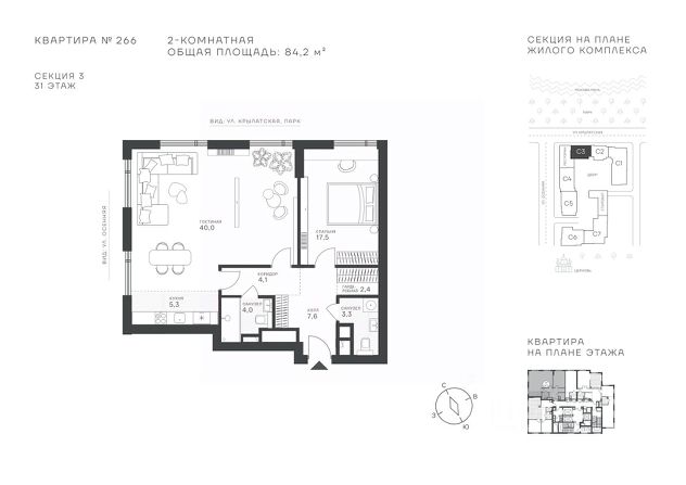Успейте стать частью уникального проекта премиум-класса на западе Москвы! В продаже квартиры: 1-комнатные от 28,1 м²; 2-комнатные от 61,2 м²; 3-комнатные от 86,6 м²; 4-комнатные от 110,7 м². Первый взнос от 30%! Рассрочка на 2 года без переплат! Крылатское 33 это премиальный жилой комплекс от специализированного застройщика ООО "Сияние". Самый высокий небоскрёб в районе, достигающий отметки в 150 метров и малоэтажный клубный формат высотой от 42 метров на приватной территории площадью 1,4 га. Великолепные виды на излучину Москва-реки, Живописный мост и урбанистический облик города. Эксклюзивные форматы квартир с панорамным остеклением и патио-террасами. Двухуровневый паркинг на 271м/м, премиальные входные группы, ресторан высокой кухни, детский сад и эко-маркет на территории комплекса. Эксклюзивные преимущества: доступ к wellness-центру, коворкингу и клубной гостиной только для резидентов. Над проектом работали именитые российские архитектурные бюро: архитектор проекта бюро "Остоженка", планировочные решения от бюро Александры Федоровой. Расположение Пешком: 5-7 минут - до парка Звезд, Крылатского парка и набережной Москвы-реки; 15 минут - до метро Крылатское Арбатско-Покровской линии; 15 минут - до пристани Крылатская. На автомобиле: 10 минут - до Третьего транспортного кольца; 15 минут - до Садового кольца и Москва- Сити; 20-30 минут - до Аэропорта Внуково; 30-40 минут - до Аэропорта Шереметьево. В 300 метрах от комплекса - удобная транспортная развязка с проспектом Маршала Жукова, обеспечивающая легкий доступ к ключевым магистралям. Благоустройство: Просторная общественная гостиная; Коворкинг с кофе-баром, комфортные переговорные зоны с быстрым wi-fi, зарядными устройствами и библиотекой; Пространство friends lab для организации клубных мероприятий; Wellness-центр с фитнес-залом и массажными кабинетами; Ресторан высокой кухни; Частный детский сад; Детское кафе; Современный детский playhub; Спортивные площадки; Гипоаллергенный сад, безопасные водные пространства, декоративные пруды и сухие фонтаны; Высокоскоростные бесшумные лифты; Разделение зон для резидентов квартала и сервисного обслуживания. Окружение: - парки: Крылатские холмы, природно-исторический парк Москворецкий, Серебряный Бор; - учебные заведения: 5 образовательных комплексов, в которые входят 15 детских садов и 12 школьных корпусов. В удобной транспортной доступности гимназия им. Е. М. Примакова и международный лицей The International School of Moscow; - уникальные спортивные сооружения: гребной канал "Крылатское", легендарный велотрек "Крылатское", "Лата Трэк" для горнолыжников и сноубордистов, ледовый дворец "Крылатское"; - единственный в Москве парк развлечений под открытым небом, включающий более 70 вариантов досуга для любого возраста и времени года. Срок сдачи проекта: 2 квартал 2027 года. Финансирование и эскроу-счет обеспечены банком МКБ.