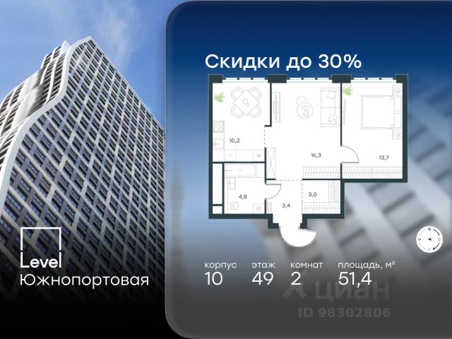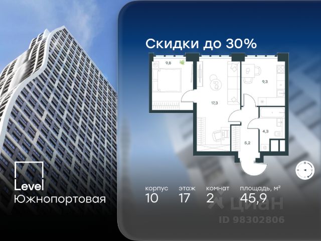 Цена указана с учётом скидки при 100%-й оплате, несубсидированной ипотеке, рассрочке (кроме программы "Рассрочка 0%"). В северной части района Печатники продается 2-комнатная квартира площадью 64.80 кв.м без отделки. Квартира расположена на 18 этаже 49-этажного корпуса 8 в жилом комплексе комфорт-класса Level Южнопортовая (компания Level Group/Левел групп). Отличная транспортная доступность: - 10 мин. пешком до станции метро "Кожуховская"; - 20 мин. пешком до станции МЦК "Дубровка"; - 3 мин. на авто до ТТК; - 13 мин. на авто до Садового кольца; - 15 мин. на авто до Бульварного кольца. Продуманный архитектурный проект: - авторская архитектура от бюро СПИЧ; - уникальные виды на реку, парки и достопримечательности города; - высота потолков в квартирах до 6 м; - окна высотой до 1,87 м с высоким коэффициентом сопротивления теплоотдаче. Расположение: Level Южнопортовая строится в северной части района Печатники - самой приближенной к центру. Здесь будет сформирован новый район "Южный порт", где построят крупный жилой и общественно-деловой центр, аналогичный Москва-Сити. В течение 10-12 лет в этом месте появятся не только жилые дома, но и развитая инфраструктура для жизни и работы. А еще совсем рядом находится набережная Москвы-реки, где планируется построить причалы для речных трамвайчиков и канатную дорогу. Уже сейчас вокруг жилого комплекса работают десятки магазинов и торговых центров, рядом расположено 6 парков, среди которых музей-заповедник "Коломенское". В 10 минутах пешком - 2 муниципальных и 2 частных детских сада, 7 общеобразовательных школ. Внутренняя инфраструктура: Для отдыха жителей в каждом корпусе предусмотрено лобби, оснащенное местами для отдыха, гостевыми санузлами и лапомойками, а в отдельных корпусах - камином. За счёт больших окон и высоких потолков пространства будут наполнены воздухом и светом. На первых этажах жилого комплекса откроются магазины, салоны красоты, фитнес-центр. Для детей строятся собственные детский сад и школа. Благоустройство: Внутренний двор комплекса разработан совместно с бюро GAFA. Основная идея - создать аналог Центрального парка в Нью-Йорке, гармонично сочетая высотные здания и большое изолированное парковое пространство. Вся площадь двора-парка будет огорожена и составит более 2 га, из которых 45% - озеленение. Одним из самых важных ландшафтных элементов здесь станет небольшая речка, наполняющаяся во время дождя. Вокруг неё появится сеть из островов, внутри которых расположатся тематические зоны спорта и отдыха. Технологии и инженерия: - автоматическая передача в управляющую компанию показаний квартирных счётчиков; - телефонная связь, телевидение и интернет на базе оптической мультисервисной сети; - гостевой Wi-Fi в лобби и на территории двора; - единый ключ доступа для входа на территорию комплекса.