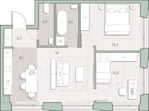 О квартире Продаётся 2-комнатная квартира общей площадью 80.1 кв.м. без отделки. Квартира расположена на 2 этаже корпуса 5.5 в жилом комплексе бизнес-класса "Среда на Лобачевского" в пешей доступности от метро "Аминьевская". О жилом комплексе "Среда на Лобачевского" полностью соответствует критериям современного жилого пространства. Взяв за основу рациональный подход, мы гармонично соединили дизайн, актуальные тренды и функциональность. Продуманный современный экстерьер и функциональные планировки внутри, приватные пространства и разнообразные досуговые зоны для каждого члена семьи — все это "Среда на Лобачевского". Инфраструктура Район отлично развит и наполнен жизнью, здесь уже есть вся необходимая инфраструктура — детские сады, школы, медучреждения, торговые центры, благоустроены парки для прогулок и отдыха, удобен и легкодоступен городской транспорт. Рядом расположены учебные корпуса крупных университетов — МГУ, МГИМО и РАНХиГС. Школы и детские сады в районе занимают высокие позиции в городских рейтингах, поэтому вам не придется беспокоиться о качестве образования детей. Как и об отдыхе: поблизости расположены живописные пруды, реки и парки. Это Парк Олимпийской деревни, Парк имени 50-летия Октября, Мещерский парк и Очаковские пруды. Теперь поставить галочки в еженедельном чек-листе "спорт-прогулки-встречи с друзьями" можно, не покидая любимый район. Особенности Особое внимание в проекте уделяется созданию функциональных пространств не только внутри дома, но и за его пределами. В ландшафтном парке "Среды на Лобачевского" расположены крытые зоны для спокойного времяпровождения, места для активного отдыха и спорта, коворкинг, соседский комьюнити-центр, водные объекты. —Ландшафтный парк во дворе. —Водный сад с зонами отдыха. —Зоны коворкинга. —Дизайнерские гранд-лобби. —Бесключевой доступ. —Подземный паркинг.
