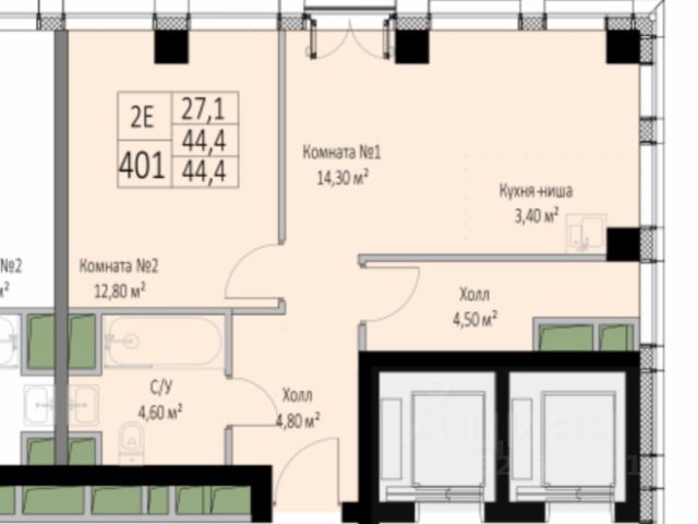 • ✅ Минимальная площадь: 44,4 м²