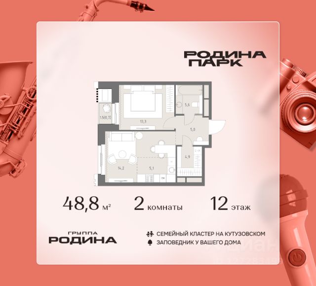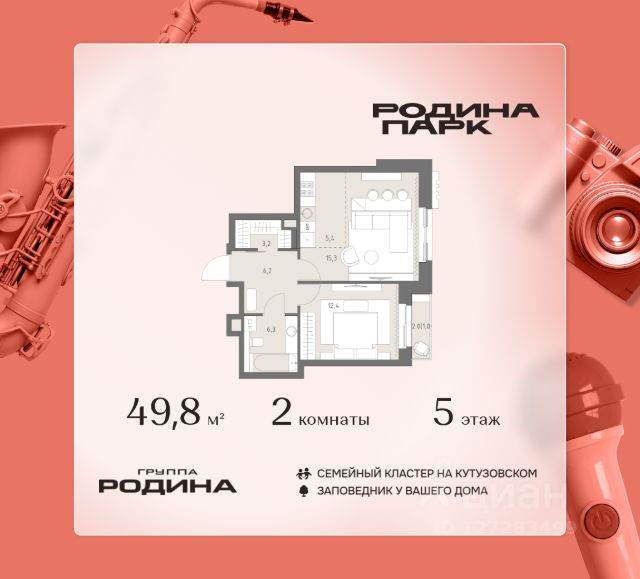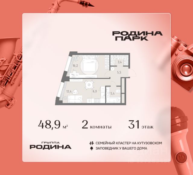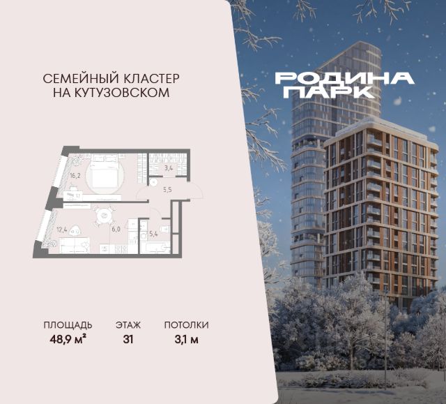 В жилом кластере Родина Парк рядом с природным заказником Долина реки Сетунь продаётся 2-комнатная квартира. Продуманная европланировка, которую легко зонировать под ваши запросы. Потолки от 3,1 м. "Родина Парк" — премиальный семейный кластер с образовательным медиакластером, строящийся на западе Москвы в окружении природного заповедника "Долина реки Сетуни". • Скидки недели на избранный пул лотов • Рассрочка 0% на выгодных условиях до 2 лет • Семейная ипотека, подбор комбо-вариантов ипотечных программ прямо в офисе продаж • Скидки 8% при 100% оплате или ипотеке. ЛОКАЦИЯ: 8 минут пешком до станции БКЛ "Давыдково". 12 минут на автомобиле до Нового Арбата. Удобные выезды на Кутузовский проспект, Аминьевское шоссе. ИНФРАСТРУКТУРА И СЕРВИСЫ ДЛЯ ЖИТЕЛЕЙ - Уникальная экосистема для развития, здоровья и творчества на территории 3,5 Га: - Первый в России образовательный медиакластер (с участием Русской медиагруппы) для творческого развития детей и взрослых с возможностью получить востребованную профессию в сфере шоу-бизнеса. - Инфраструктура и сервисы для семей с детьми на территории жилого кластера (частный детский сад, детские игровые пространства, творческие студии для занятий музыкой и танцами, безопасная и комфортная среда для детей и родителей), событийно-культурная площадка для проведения семейного досуга); - Здоровая среда (биохакинг-центр, фитнес-зал и спортивная инфраструктура во дворе, медитационные пространства, инженерные решения для освещения, свежего воздуха и очистки воды, сервисы красоты и поддержания активного долголетия); - Сервисы заботы (инфраструктура комфорта - подземный паркинг, кладовые, колясочные, консьерж- сервис, умный дом, мобильное приложение, профессиональная управляющая компания, сервисы охраны и обеспечение абсолютной безопасности) - Комьюнити резидентов (социальные пространства для дружеского и делового общения - летний атриум с уличным кинотеатром, зоны отдыха, кафе и рестораны, комьюнити-сервис с культурно- событийной программой в медиакластере); - Модуль благосостояния (комфортные пространства для работы и саморазвития - коворкинги и переговорные). ИНФРАСТРУКТУРА РАЙОНА: Насыщенная образовательная среда: филиалы МГИМО, МГУ, МГТУ, Сколково. Топовые школы: 6 лучших частных школ Москвы и области (Forbes) в 10 минутах езды. Природное окружение для пеших прогулок, спорта и отдыха. "Родина Парк" — это место, где растут и дети, и ваши возможности. Экосистема, где всё подчинено развитию — физически, профессионально, творчески.