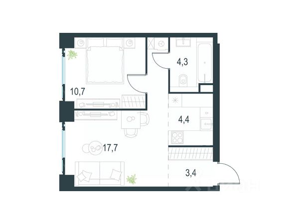 О квартире Продаётся 2-комнатная квартира общей площадью 54.7 кв.м. без отделки. Квартира расположена на 9 этаже корпуса 5.7 в жилом комплексе бизнес-класса "Среда на Лобачевского" в пешей доступности от метро "Аминьевская". О жилом комплексе "Среда на Лобачевского" полностью соответствует критериям современного жилого пространства. Взяв за основу рациональный подход, мы гармонично соединили дизайн, актуальные тренды и функциональность. Продуманный современный экстерьер и функциональные планировки внутри, приватные пространства и разнообразные досуговые зоны для каждого члена семьи — все это "Среда на Лобачевского". Инфраструктура Район отлично развит и наполнен жизнью, здесь уже есть вся необходимая инфраструктура — детские сады, школы, медучреждения, торговые центры, благоустроены парки для прогулок и отдыха, удобен и легкодоступен городской транспорт. Рядом расположены учебные корпуса крупных университетов — МГУ, МГИМО и РАНХиГС. Школы и детские сады в районе занимают высокие позиции в городских рейтингах, поэтому вам не придется беспокоиться о качестве образования детей. Как и об отдыхе: поблизости расположены живописные пруды, реки и парки. Это Парк Олимпийской деревни, Парк имени 50-летия Октября, Мещерский парк и Очаковские пруды. Теперь поставить галочки в еженедельном чек-листе "спорт-прогулки-встречи с друзьями" можно, не покидая любимый район. Особенности Особое внимание в проекте уделяется созданию функциональных пространств не только внутри дома, но и за его пределами. В ландшафтном парке "Среды на Лобачевского" расположены крытые зоны для спокойного времяпровождения, места для активного отдыха и спорта, коворкинг, соседский комьюнити-центр, водные объекты. —Ландшафтный парк во дворе. —Водный сад с зонами отдыха. —Зоны коворкинга. —Дизайнерские гранд-лобби. —Бесключевой доступ. —Подземный паркинг.