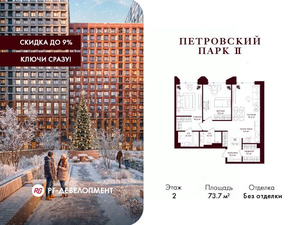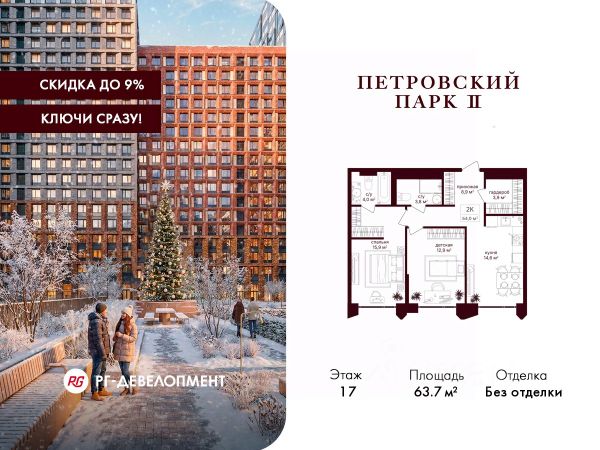 Рассрочка 0% + скидка 2%. Первый платёж 30%, второй - не позднее 31.12.2026 г. Продаётся 2-комнатная квартира 65.1 кв.м. в ЖК "Петровский парк II" на 5-м этаже 17 этажного дома. ЖК "Петровский парк II" — жилой комплекс в Савёловском районе, где город ощущается иначе. Здесь история и масштаб Москвы не давят, а задают фон для спокойной, уверенной жизни рядом с центром. Это место, где статус читается не в громких формулировках, а в окружении, архитектуре и ощущении пространства. Коротко о важном: • Район с глубоким историческим контекстом и парковым окружением; • 5 минут пешком до метро "Динамо", рядом с деловой и культурной жизнью города; • Редкое сочетание: энергия мегаполиса и тишина зелёных аллей; • Архитектура от бюро Syntaxis с пластикой форм и индивидуальным характером фасадов; • Панорамные виды на город и зелёные массивы Петровского и Тимирязевского парков; • Закрытый двор без машин, вдохновлённый эстетикой дворцовых садов; • Просторные гранд-лобби с высокими потолками и выверенной, респектабельной эстетикой; • Частный детский сад во дворе; • Подземный паркинг и кладовые; • РГ-Девелопмент - ТОП-20 крупнейших застройщиков Москвы. Расположение комплекса формирует особое ощущение свободы выбора. Утром - прогулка по тенистым аллеям Петровского парка, днём - работа и встречи в деловых кластерах поблизости, вечером - культурные события, рестораны и городские пространства в нескольких минутах пути. Здесь расстояния измеряются не километрами, а шагами от дома. Архитектура "Петровского парка II" задумана как современная доминанта района и одновременно как уважительный диалог с исторической средой. Асимметричные объёмы, волнообразные элементы и игра света и тени создают выразительный, но сдержанный силуэт. Архитектура наполнена воздухом и визуальным ритмом, оставаясь спокойной и уверенной. Общественные пространства продолжают эту логику. Два гранд-лобби с высокими потолками и благородной цветовой палитрой воспринимаются как пространства, где хочется замедлиться: встретить гостей, перевести дыхание после дня или просто почувствовать уровень среды, в которой вы живёте. Внутренний двор комплекса - это отдельный мир, закрытый от машин и городского шума. Ландшафтный дизайн отсылает к регулярным дворцовым садам: геометрия аллей, зелёные "кабинеты", цветники и камерные зоны отдыха создают разные сценарии для повседневной жизни. Здесь органично соседствуют детские игровые пространства, плейхаб, спортивные зоны и тихие места для отдыха. На территории комплекса расположены магазины, кафе и рестораны, а также частный детский сад, встроенный в общую структуру двора. Подземный паркинг и кладовые поддерживают ощущение порядка и цельности пространства.
